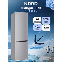 Двухкамерный холодильник NORD NRB 154 S с нижней морозилкой, норд объемом 353 л, серебристый: сравнение цен, характеристики, фото, актуальное наличие и цены.