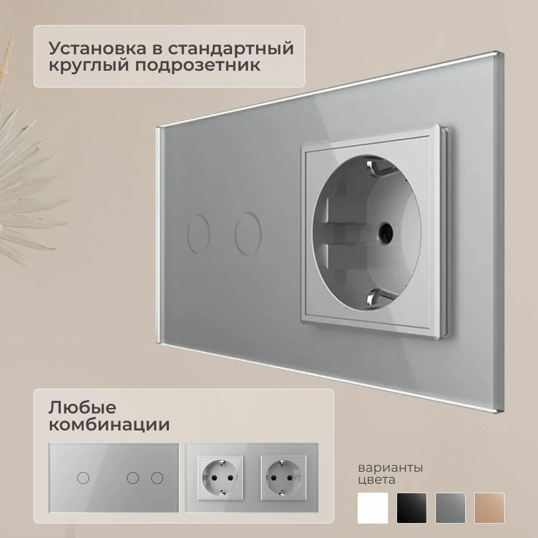 Купить Двухклавишный сенсорный выключатель Livolo с розеткой с доставкой по всей России. Двухклавишный сенсорный выключатель Livolo с розеткой: сравнение цен, характеристики, фото, актуальное наличие и цены.