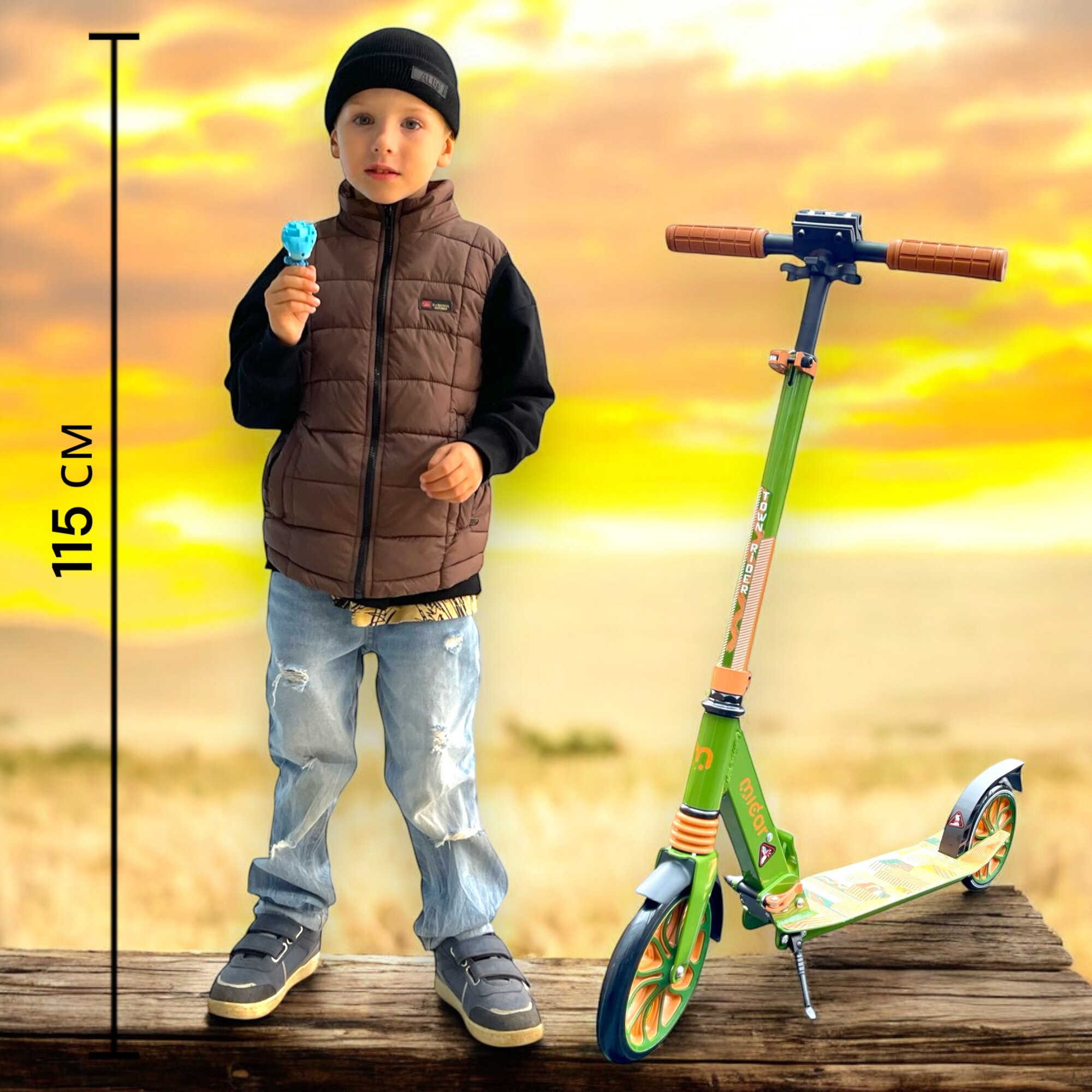 Двухколесный самокат Micar Town Rider Khaki 2025 складной c большими колесами 200 мм и передним амортизатором: сравнение цен, характеристики, фото, актуальное наличие и цены.