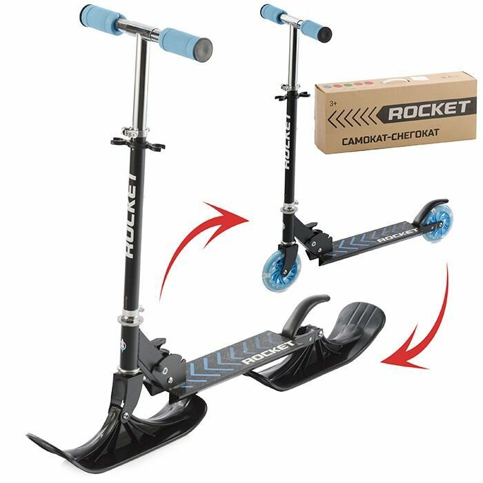 Двухколесный самокат-трансформер ROCKET с лыжами и светящимися колесами / Сноукат / Снегокат с лыжами (2в1) Синий.: сравнение цен, характеристики, фото, актуальное наличие и цены.