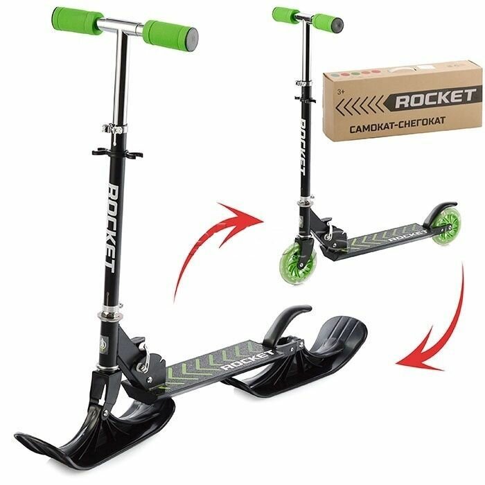 Двухколесный самокат-трансформер ROCKET с лыжами и светящимися колесами / Сноукат / Снегокат с лыжами (2в1) Зеленый.: сравнение цен, характеристики, фото, актуальное наличие и цены.