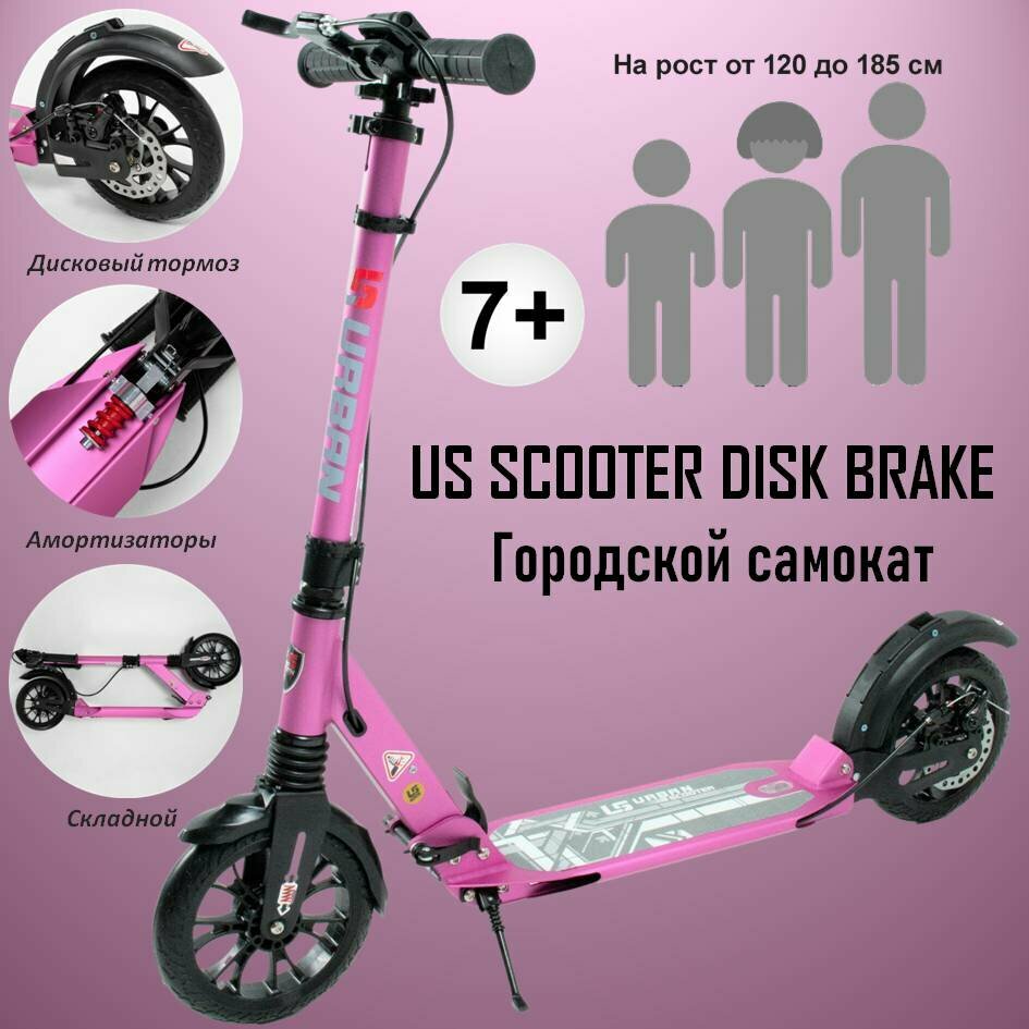 Купить Двухколёсный городской самокат Urban складной с двумя амортизаторами и ручным дисковым тормозом US Scooter Disk Brake 2024 Розовый с доставкой по всей России.