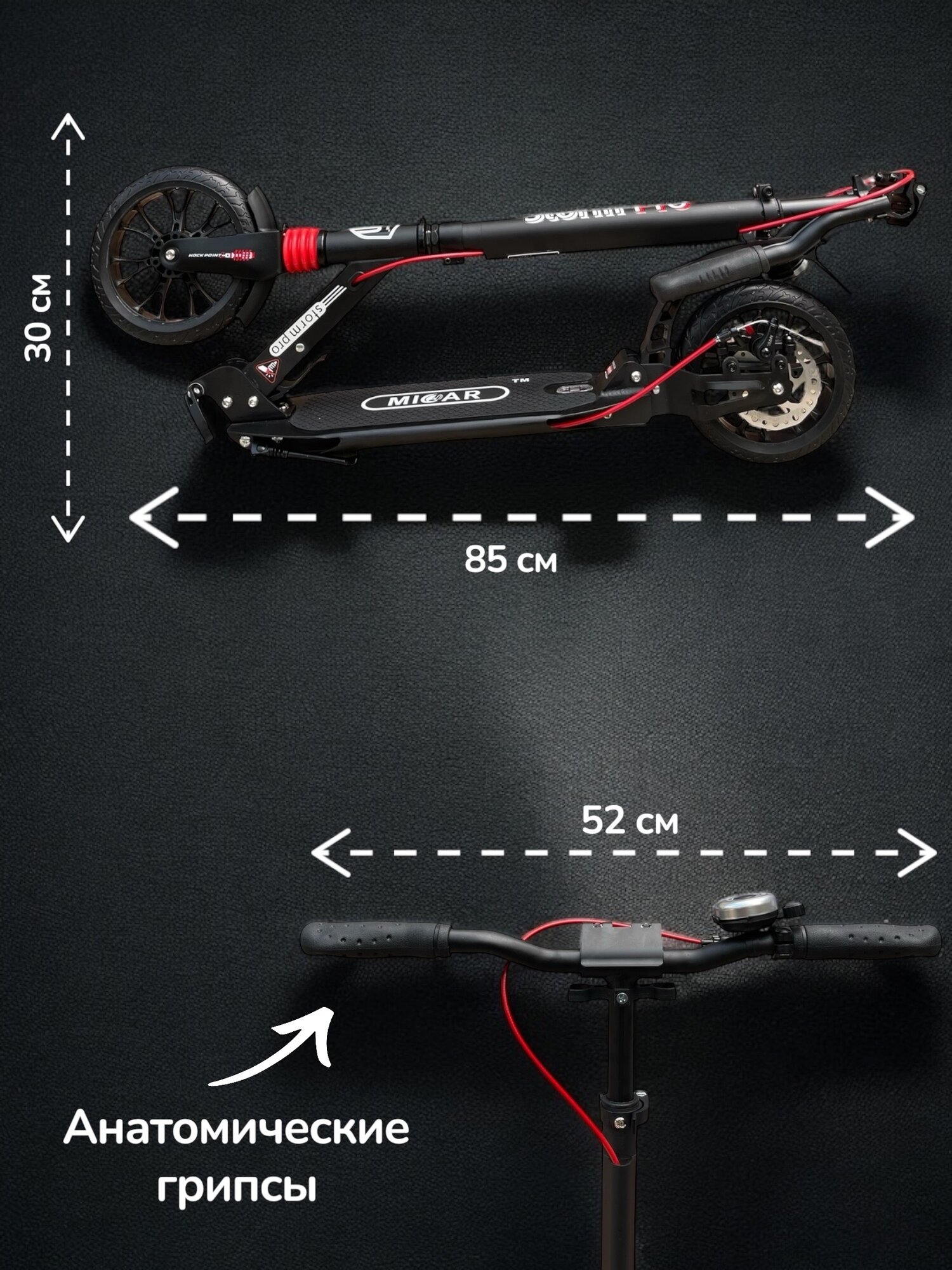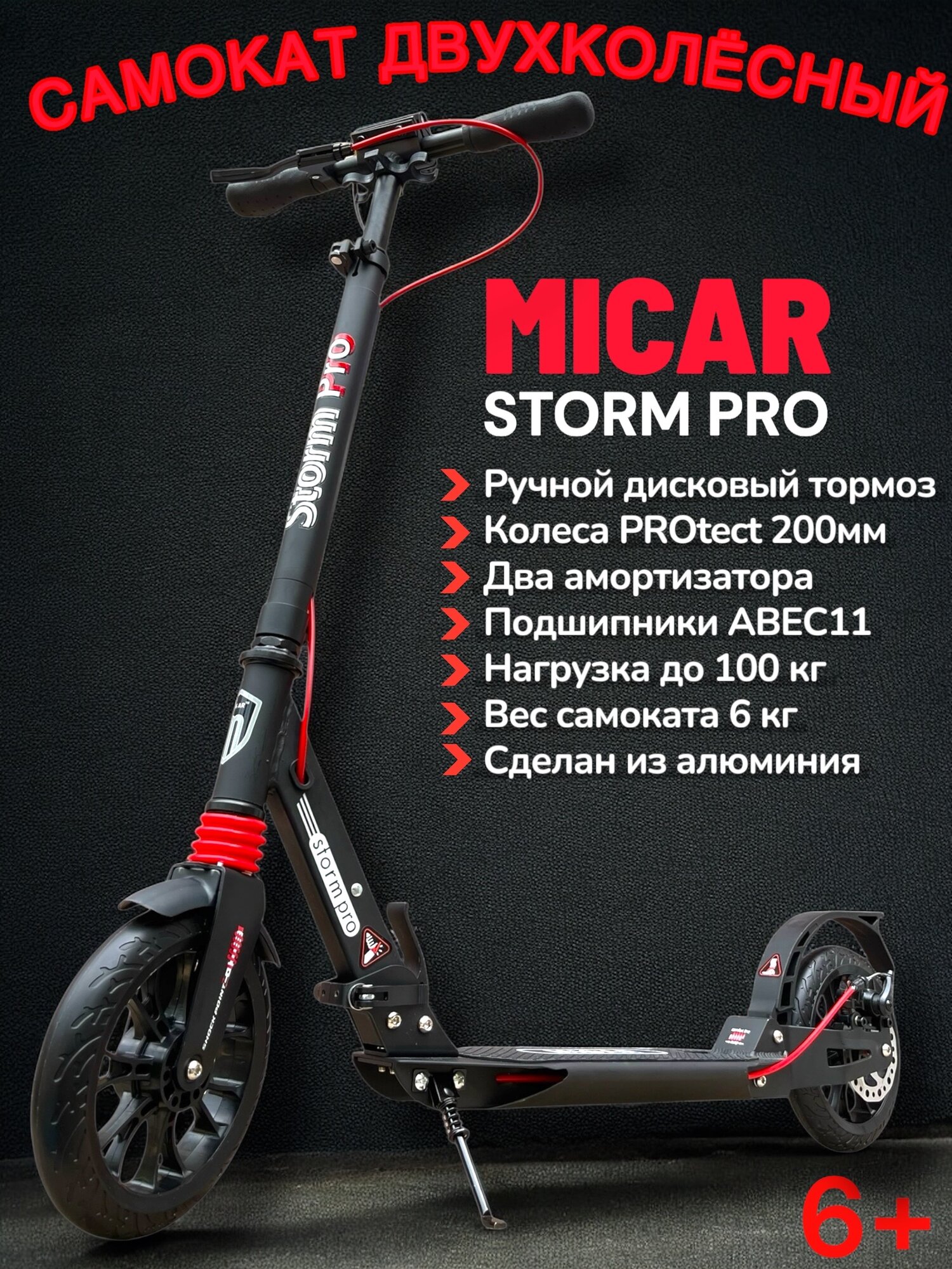 Двухколёсный самокат Micar Storm Pro 2024 Black складной с двумя амортизаторами и ручным дисковым тормозом: сравнение цен, характеристики, фото, актуальное наличие и цены.