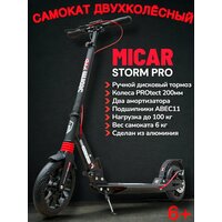 Купить Двухколёсный самокат Micar Storm Pro 2024 Black складной с двумя амортизаторами и ручным дисковым тормозом с доставкой по всей России.