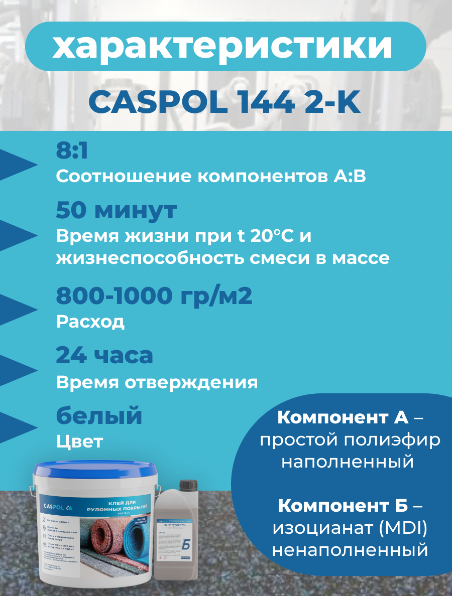 Двухкомпонентный полиуретановый клей для рулонных покрытий Каспол 144, белый, 8,1 кг: сравнение цен, характеристики, фото, актуальное наличие и цены.