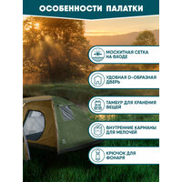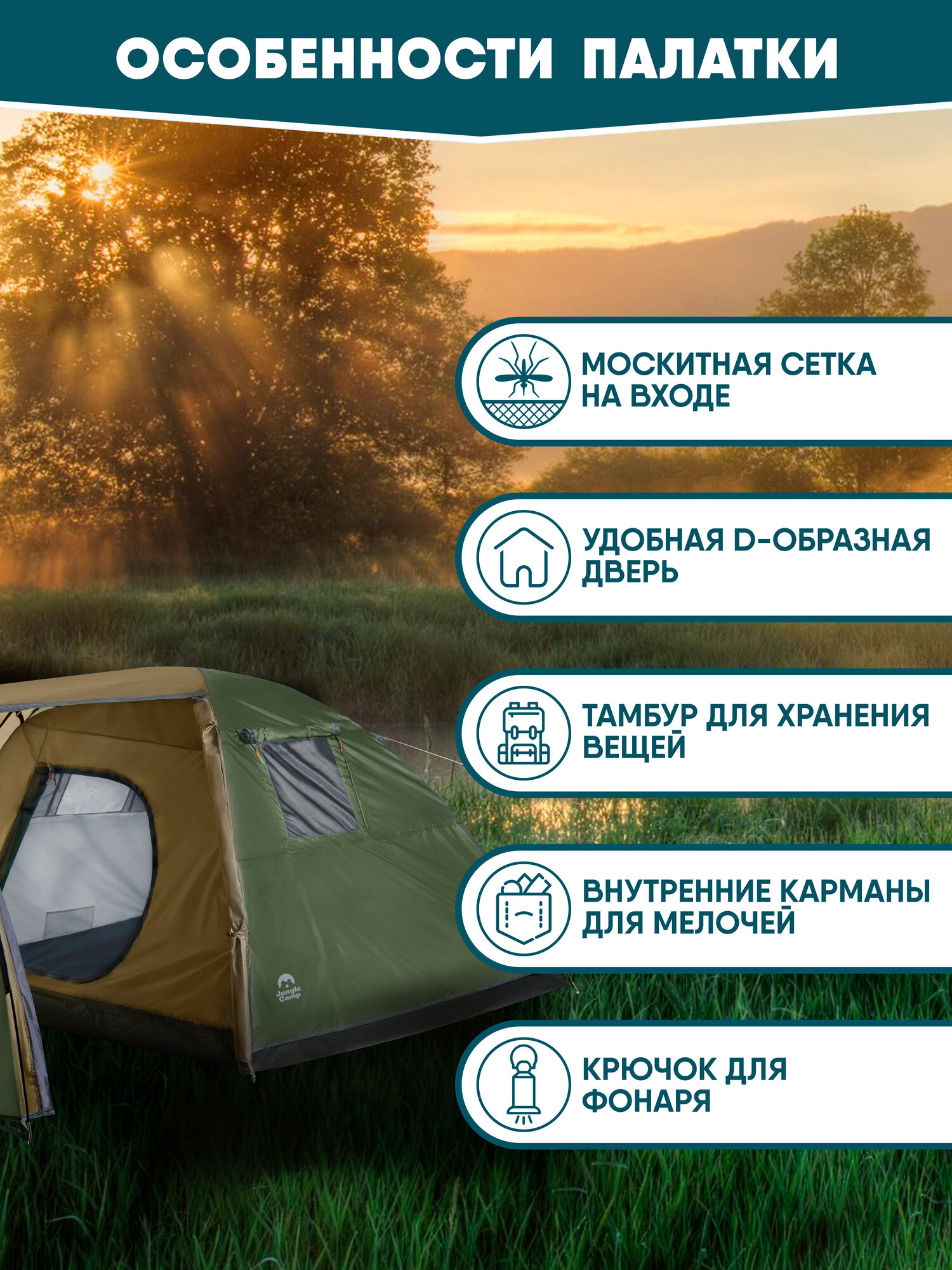 Палатка легко и быстро собирается. Вместительный тамбур, где достаточно места для хранения рюкзаков, обуви и личных вещей.