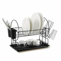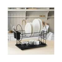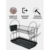 Двухуровневая сушилка для посуды с поддоном, черная