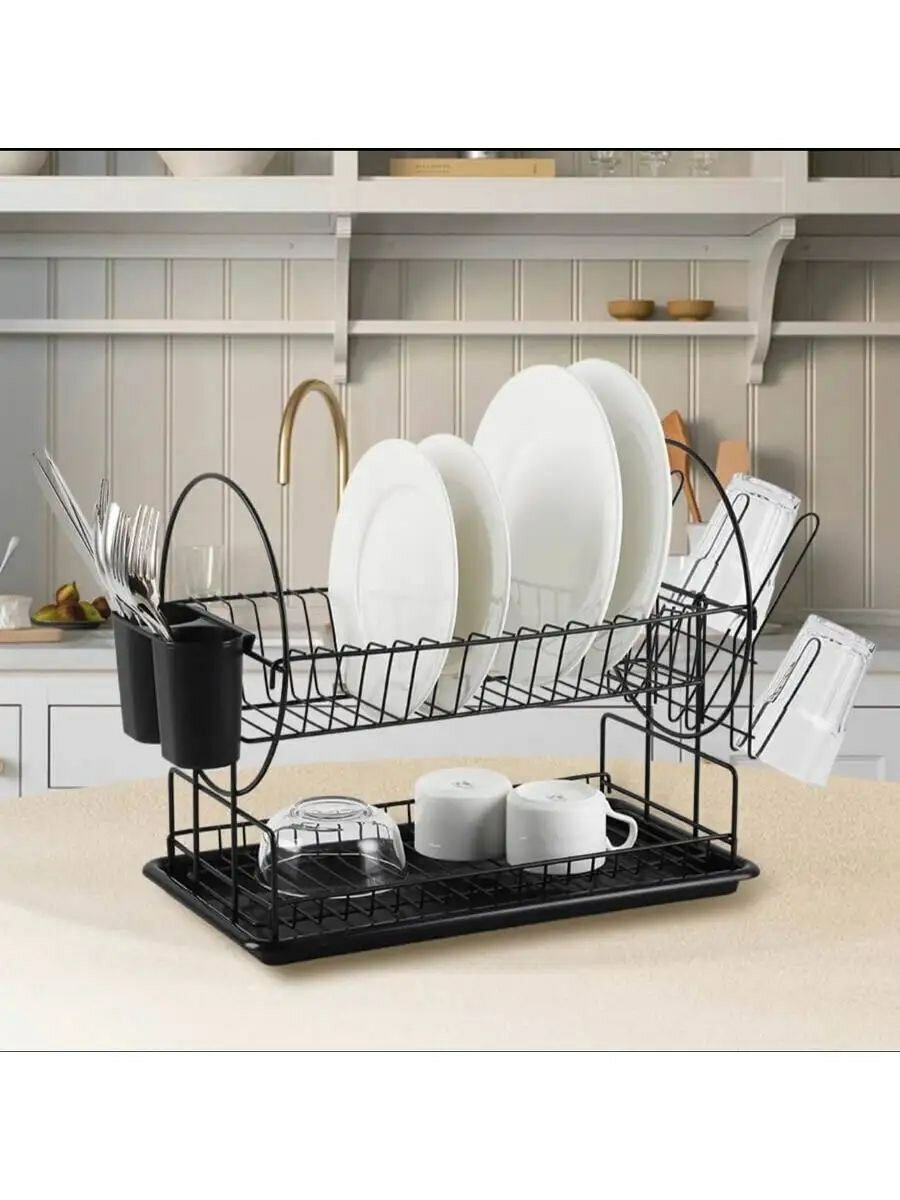 Двухуровневая сушилка для посуды с поддоном, черная: сравнение цен, характеристики, фото, актуальное наличие и цены.