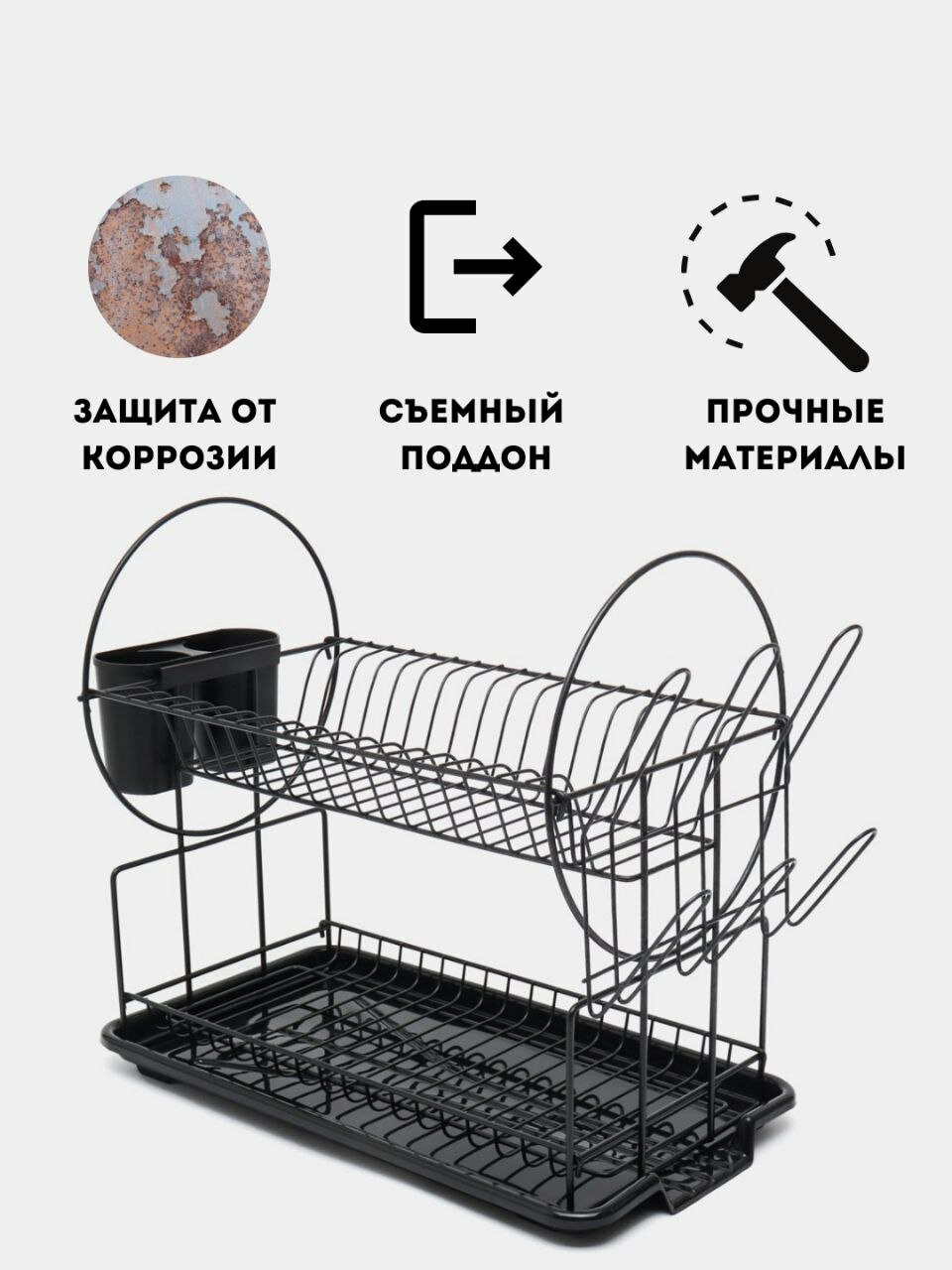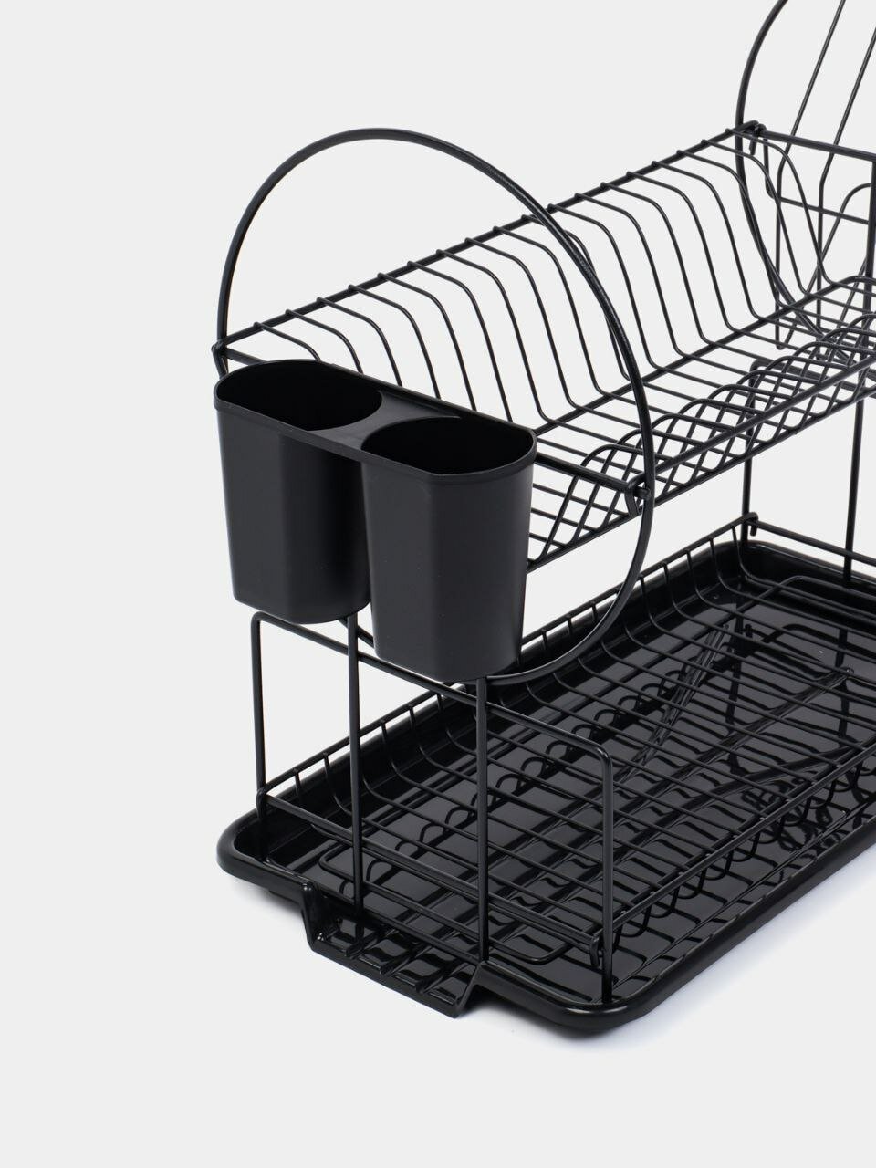 Купить Двухуровневая сушилка для посуды с поддоном, черная с доставкой по всей России.