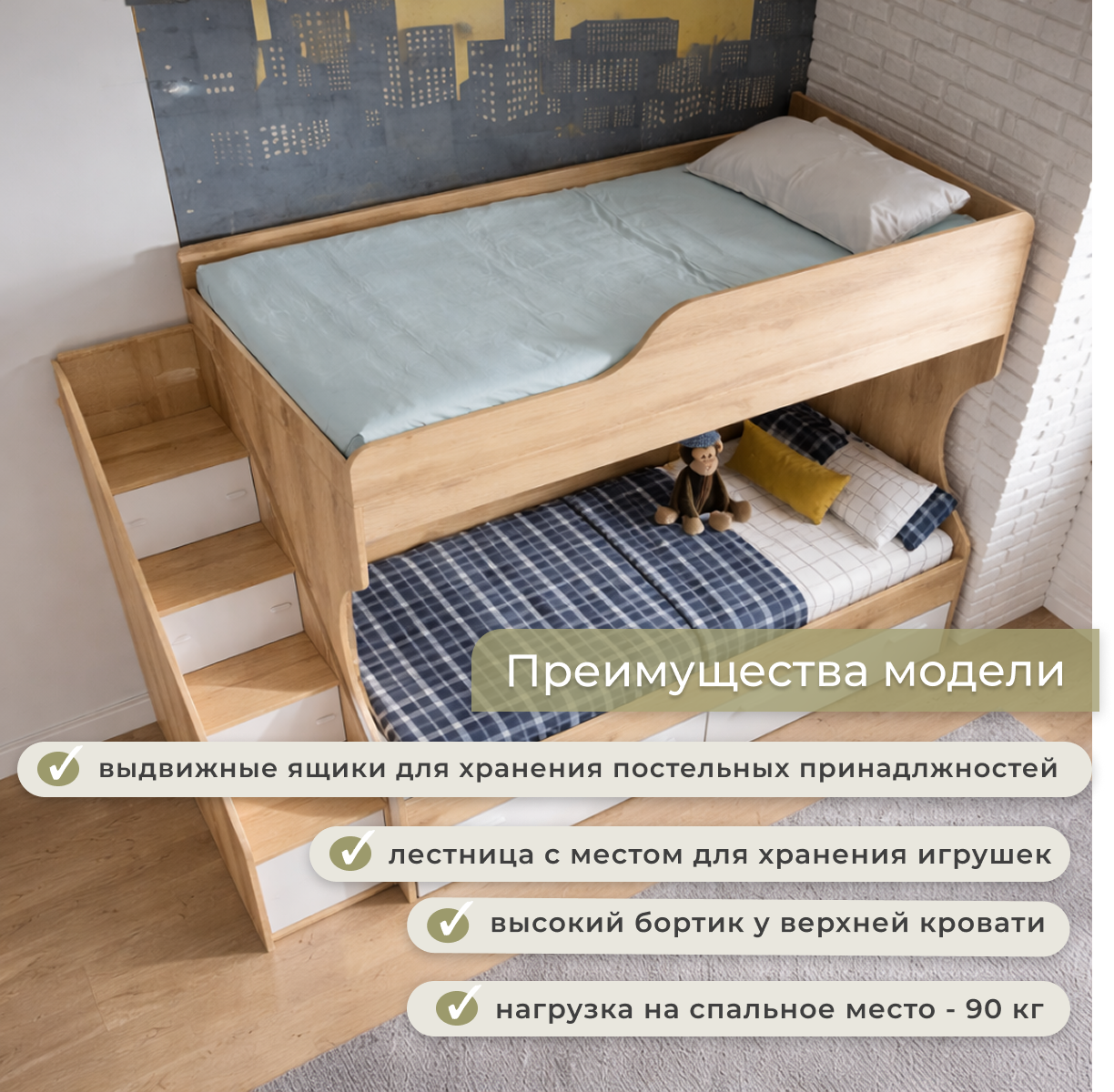 для детей, с бортиком, с лестницей, с полкой, с ящиком для белья