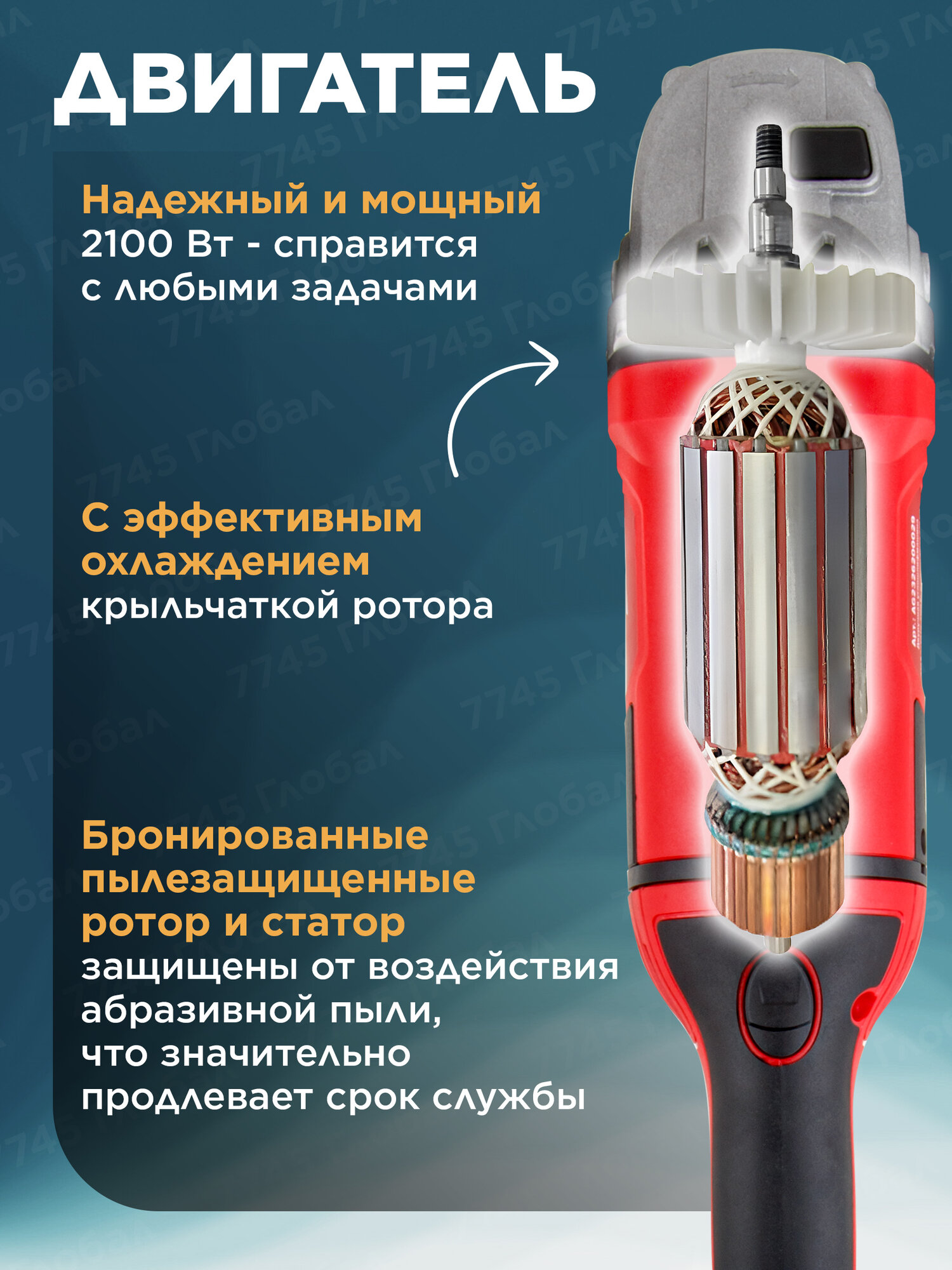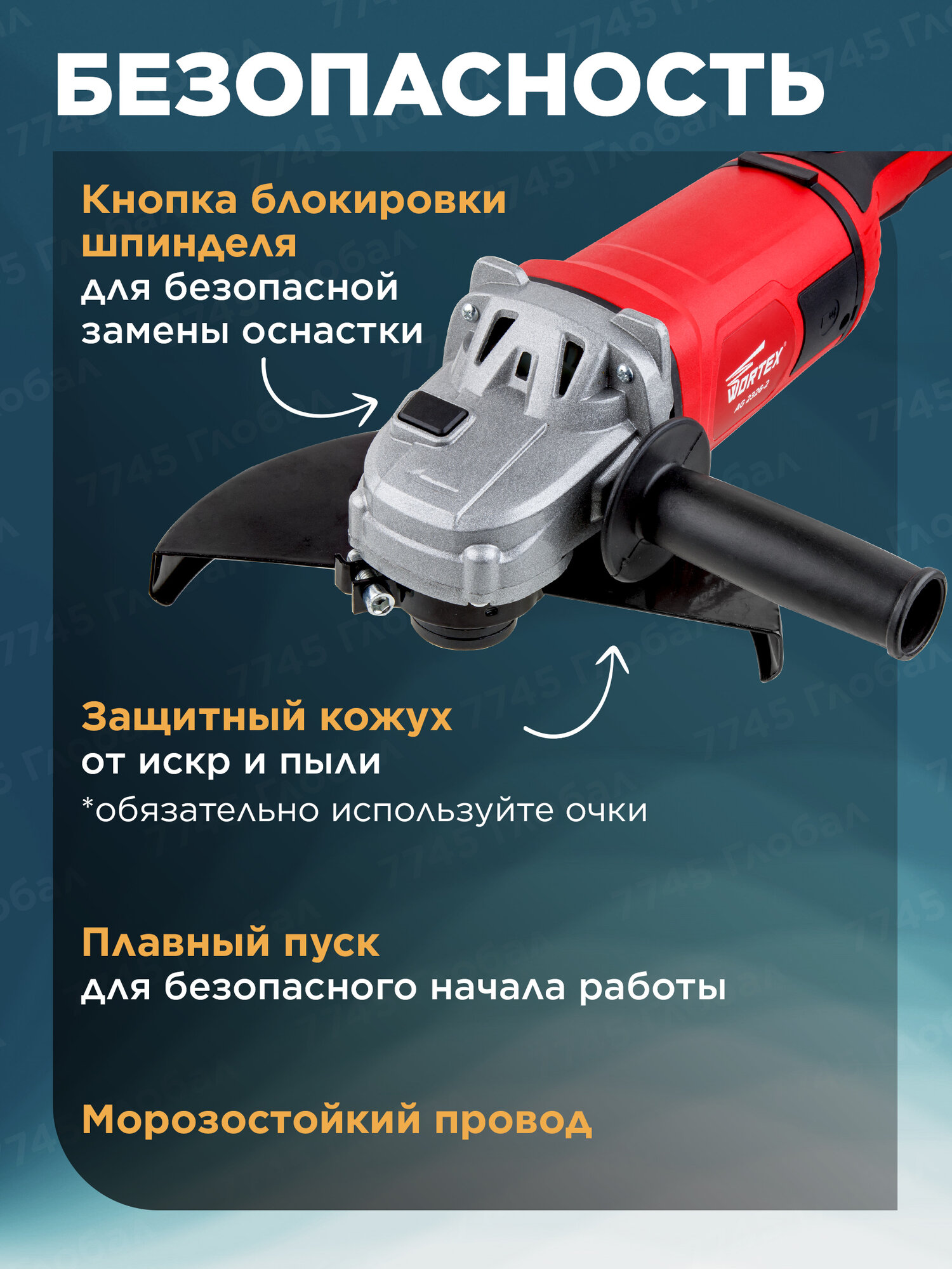 | Особенности конструкции | двуручная, фиксация шпинделя, блокировка кнопки включения, дополнительная рукоятка, регулировка положения кожуха без инструмента, защитный кожух |