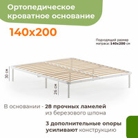 Сборный двуспальный металлический каркас кровати 140х200 см с анатомическим основанием и держателями для матраса в комплекте (2 шт). Может использоваться как вставляемое в кровать основание под матрас или как полноценная кровать без изголовья.