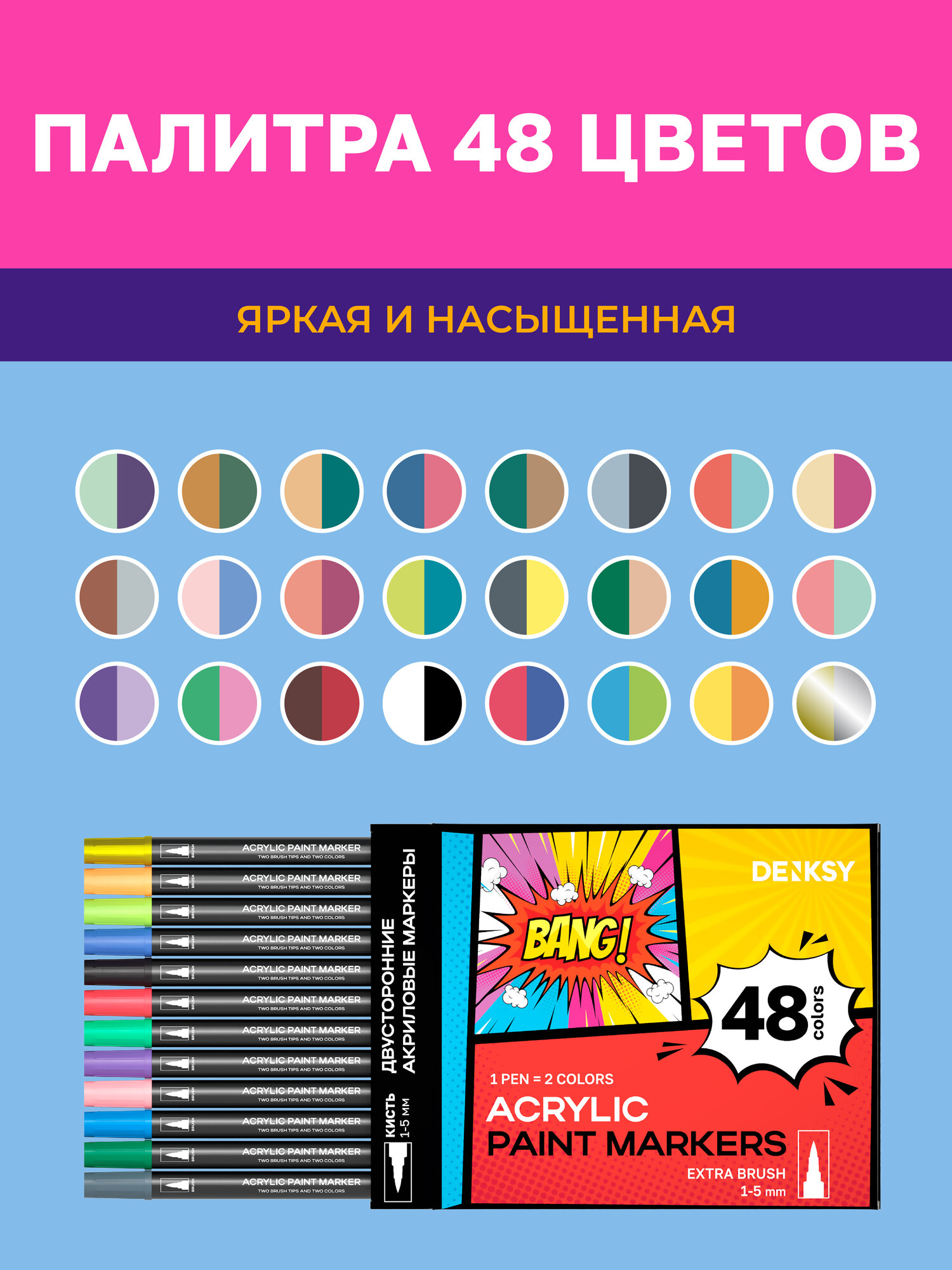 Этот уникальный набор двусторонних акриловых маркеров от DENKSY - идеальное решение для всех, кто жаждет воплотить свои творческие идеи в ярких цветах. С этим набором вы откроете для себя целый мир возможностей и невероятных эмоций. Вот почему вы просто не можете пройти мимо: