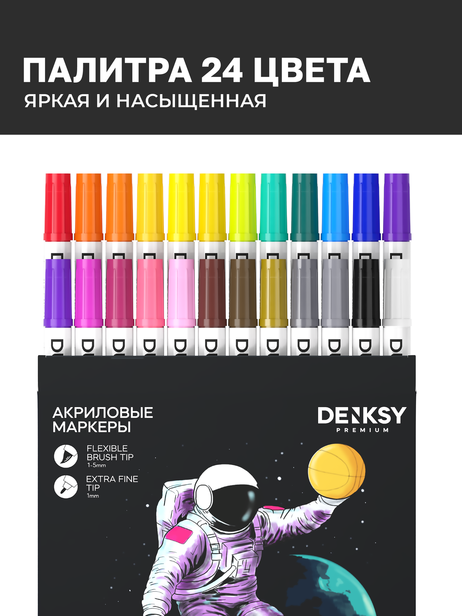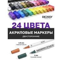 Двусторонние акриловые маркеры, кисть и линер, 24 цвета, толщина линии 1мм.: сравнение цен, характеристики, фото, актуальное наличие и цены.