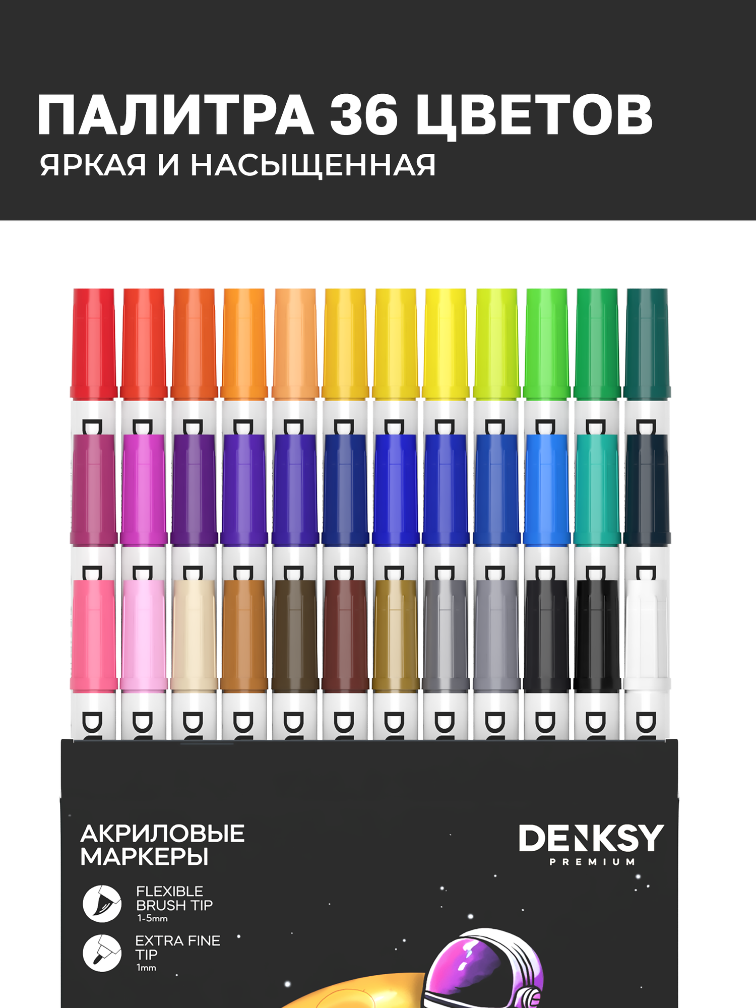 Купить Двусторонние акриловые маркеры, кисть и линер, 36 цветов, толщина линии 1мм. с доставкой по всей России.