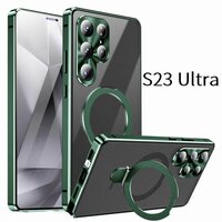 Купить Двусторонний защитный чехол для Samsung Galaxy S23 Ultra (Самсунг Галакси S23 Ультра), Полная защита 360 магнитной подставкой Magsafe Чехол, зеленый с доставкой по всей России.