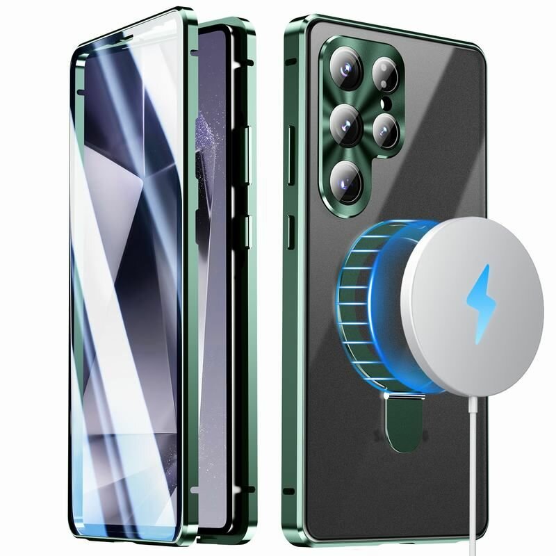 Двусторонний защитный чехол для Samsung Galaxy S23 Ultra (Самсунг Галакси S23 Ультра), Полная защита 360 магнитной подставкой Magsafe Чехол, зеленый: сравнение цен, характеристики, фото, актуальное наличие и цены.