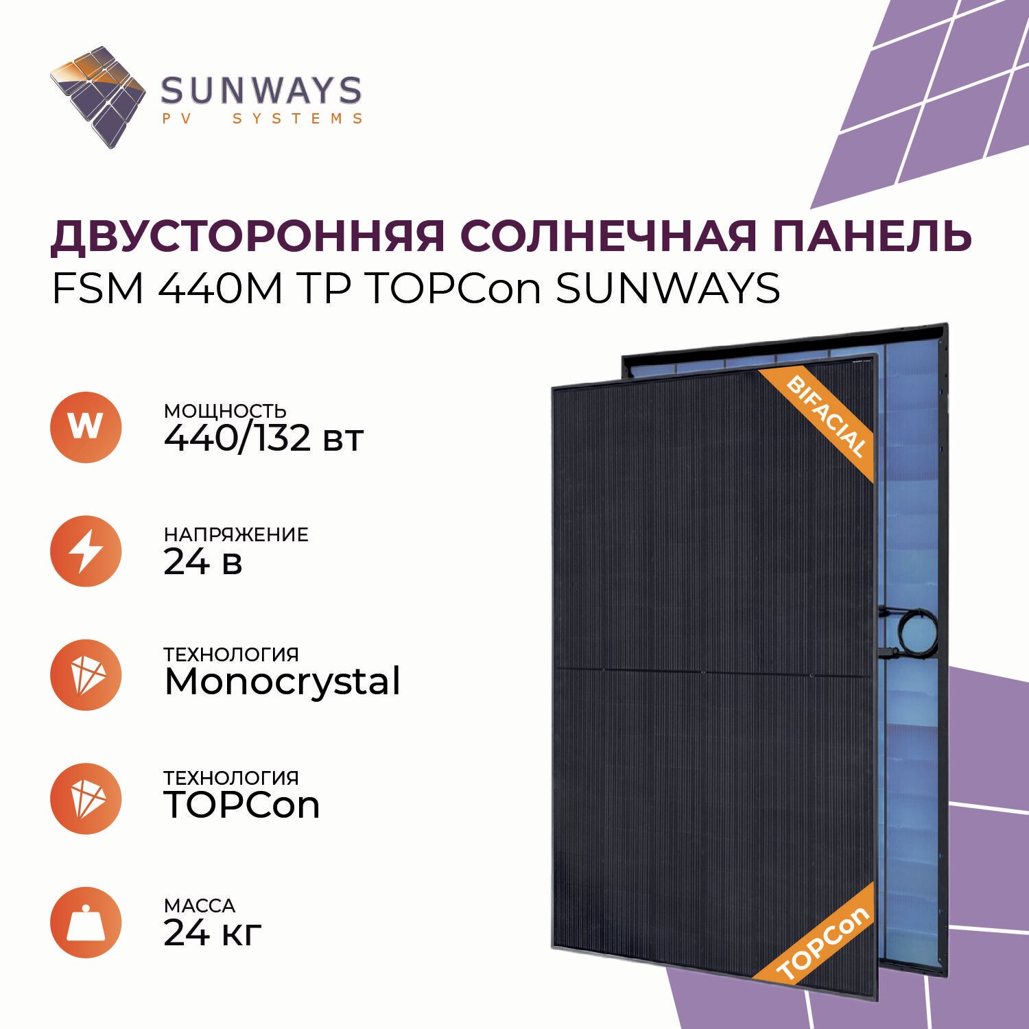 Технологическое преимущество солнечной панели Sunways FSM серии Twin Power