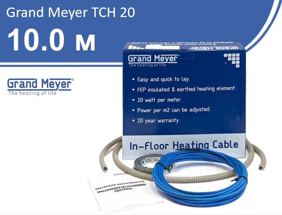 Двужильный нагревательный кабель в стяжку мощностью Grand Meyer, THC20-10 200Вт, 1.4 м2, длина кабеля 10 м: сравнение цен, характеристики, фото, актуальное наличие и цены.