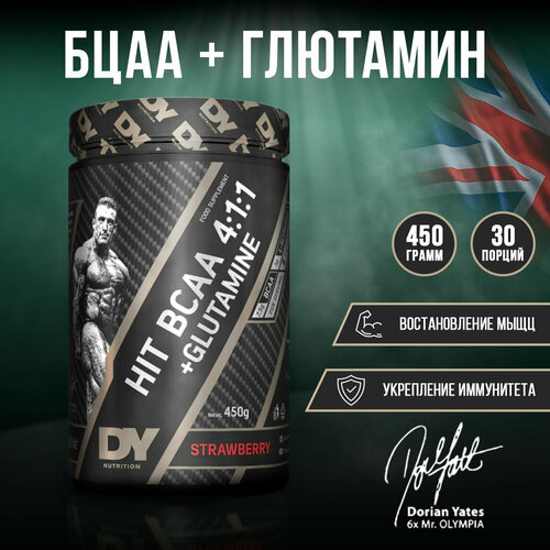 Купить DY Nutrition BCAA GLUTAMINE 450g (Strawberry), ВСАА 4:1:1 + L-глютамин 450 грамм, Аминокислота, 30 порций (Клубника) с доставкой по всей России.