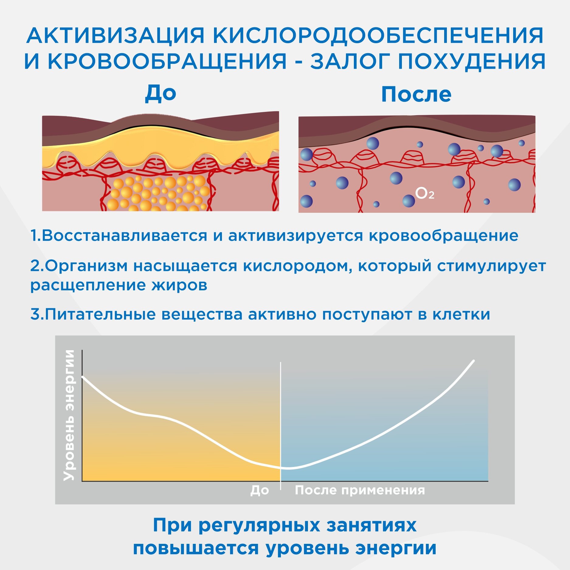 • Активизации кровообращения и повышению эффективности уходовых процедур, усвояемости БАД