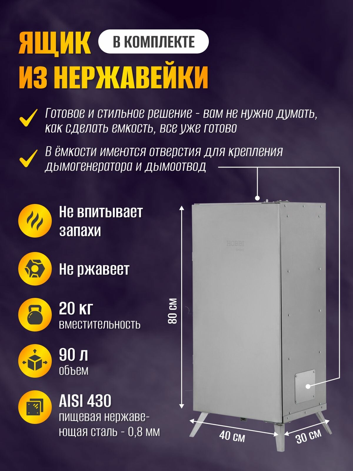 Дымогенератор Hobbi Smoke 5.5л коптильня для холодного копчения cо стальной емкостью: сравнение цен, характеристики, фото, актуальное наличие и цены.