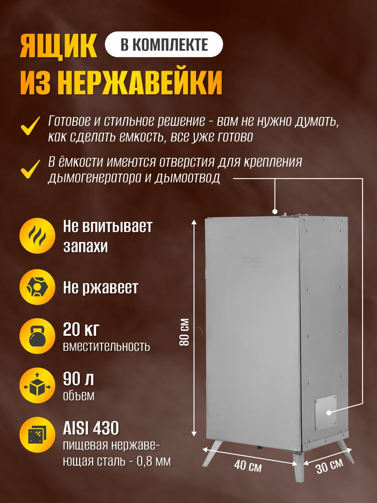 Дымогенератор Hobbi Smoke 7.5л коптильня для холодного копчения cо стальной емкостью: сравнение цен, характеристики, фото, актуальное наличие и цены.