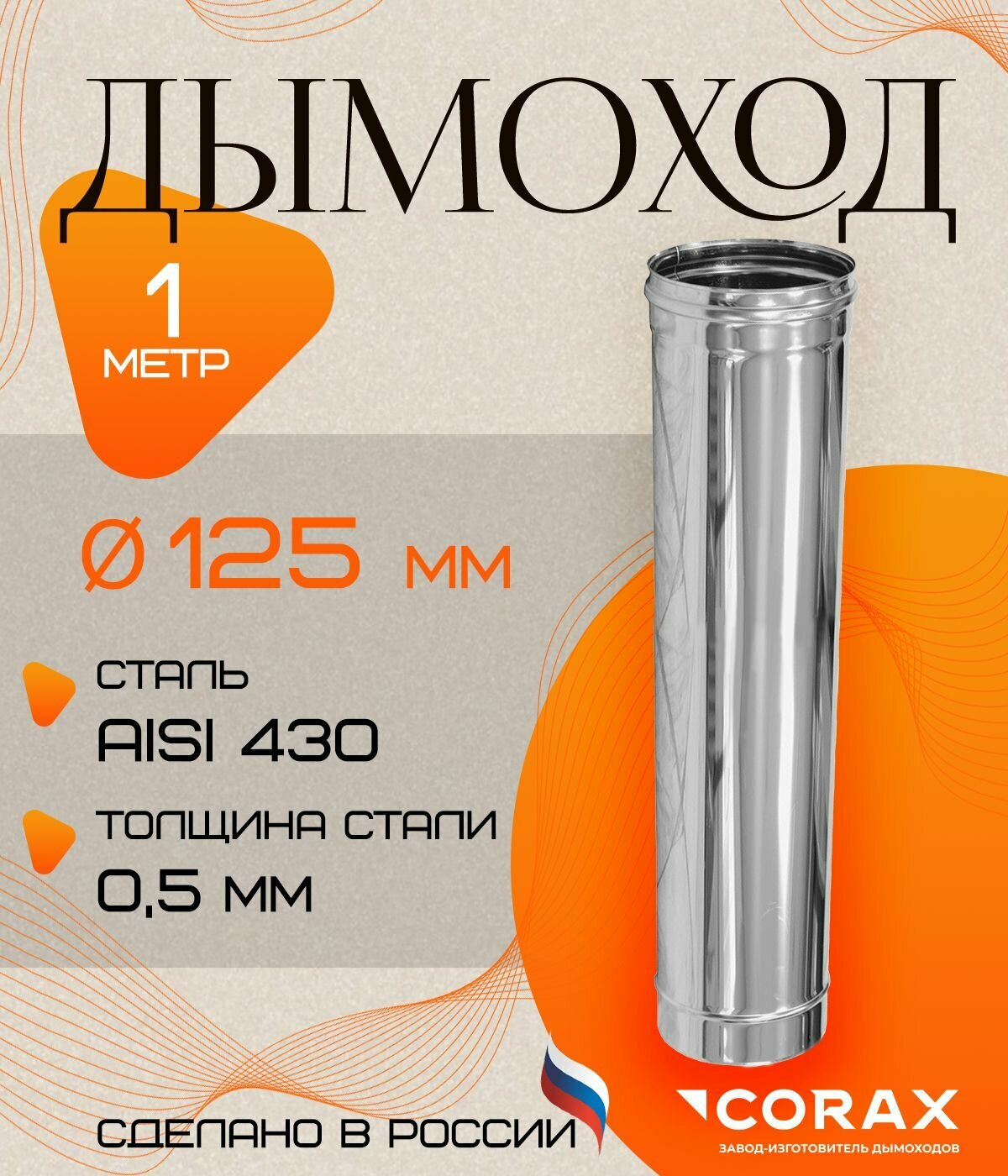 Купить Дымоход нержавеющий 1 м (430/0.5мм) Ф125 Corax с доставкой по всей России.