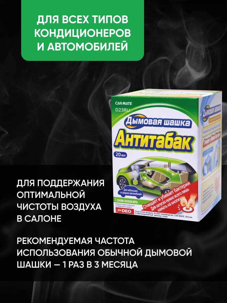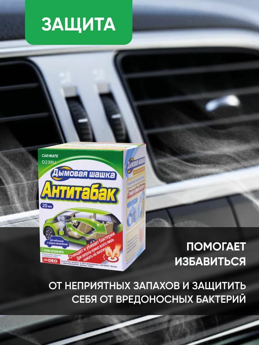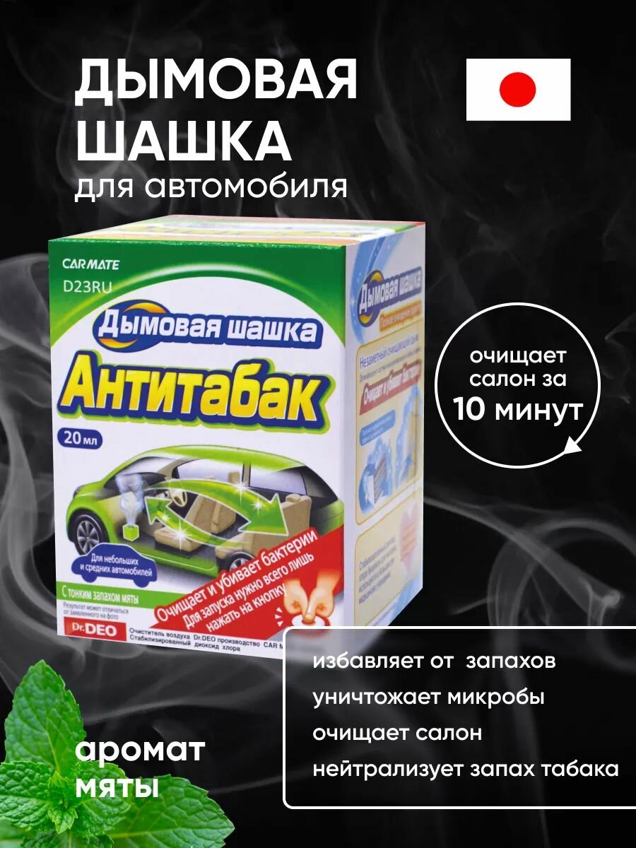 Дымовой нейтрализатор запахов для авто Carmate Steam Deo cigarette deodorant антитибак с ароматом мяты 20мл D23RU, шашка для системы кондиционирования машины: сравнение цен, характеристики, фото, актуальное наличие и цены.