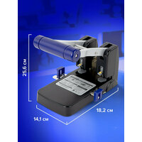 • Количество пробиваемых листов: 110 шт. • Количество пробиваемых отверстий: 2. • Наличие ограничительной линейки: да. • Метка центрирования: да. • Материал корпуса: металл/ пластик. • Диаметр пробиваемого отверстия: 6 мм. • Расстояние между отверстиями: 8 см. • Серия: Heavy duty. • Наличие контейнера для конфетти: да. • Цвет корпуса: черный/синий. • Высота корпуса: 25.6 см. • Ширина корпуса: 18.2 см. • Глубина корпуса: 14.1 см. • Упаковка: картонная коробка. • Артикул производителя: 272721.