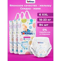 Детские подгузники трусики Tokisan размер 6 Extra Large (XXL) набор (комплект) 3 упаковки по 28 штук разработаны по японским технологиям с постоянным контролем качества производства и используемых материалов. Это удобные и стильные, высококачественные мягкие из натуральных материалов памперсы для активных, подвижных мальчиков и девочек. Именно благодаря этому максимально уменьшается риск возникновения раздражений и аллергии. Эти памперсы для детей удовлетворят запросы самых взыскательных родителей. Подгузники-трусики удобно надевать, в процессе носки они не сползают и не сбиваются. Надежную фиксацию подгузника на теле ребенка обеспечивают особенные резиночки. Мягкие, прилегают к ножке плотно, но комфортно, не передавливают чувствительную кожу ребенка и предохраняют от протекания. Подгузник нежный и дышащий (паропроницаемый), словно хлопок. Специальная конструкция поглощающего слоя подгузников отлично впитывает влагу, обеспечивая ребенку уникальный комфорт во время активной игры в течение дня, а также позволит малышу сладко спать по ночам. Благодаря тому, что памперс идеально прилегает к телу, он не провисает и не стесняет движений малыша. Эффективная система абсорбции быстро поглощает жидкость. Специальный внутренний слой моментально впитывает влагу, надежно удерживая её внутри, что исключает появление опрелостей. Внутренний слой изготовлен из тончайших волокон, поэтому подгузники-трусики Tokisan лёгкие и такие нежные на ощупь. В японской культуре качество детских товаров в приоритете. Безусловно, наибольшей популярностью пользуются подгузники, произведенные по японской технологии, ведь они тонкие и мягкие, не жмут и не натирают чувствительную кожу, младенцу в них не только сухо, но и удобно. Такие товары для детей (мальчиков и девочек) станут незаменимым помощником в вашем доме.