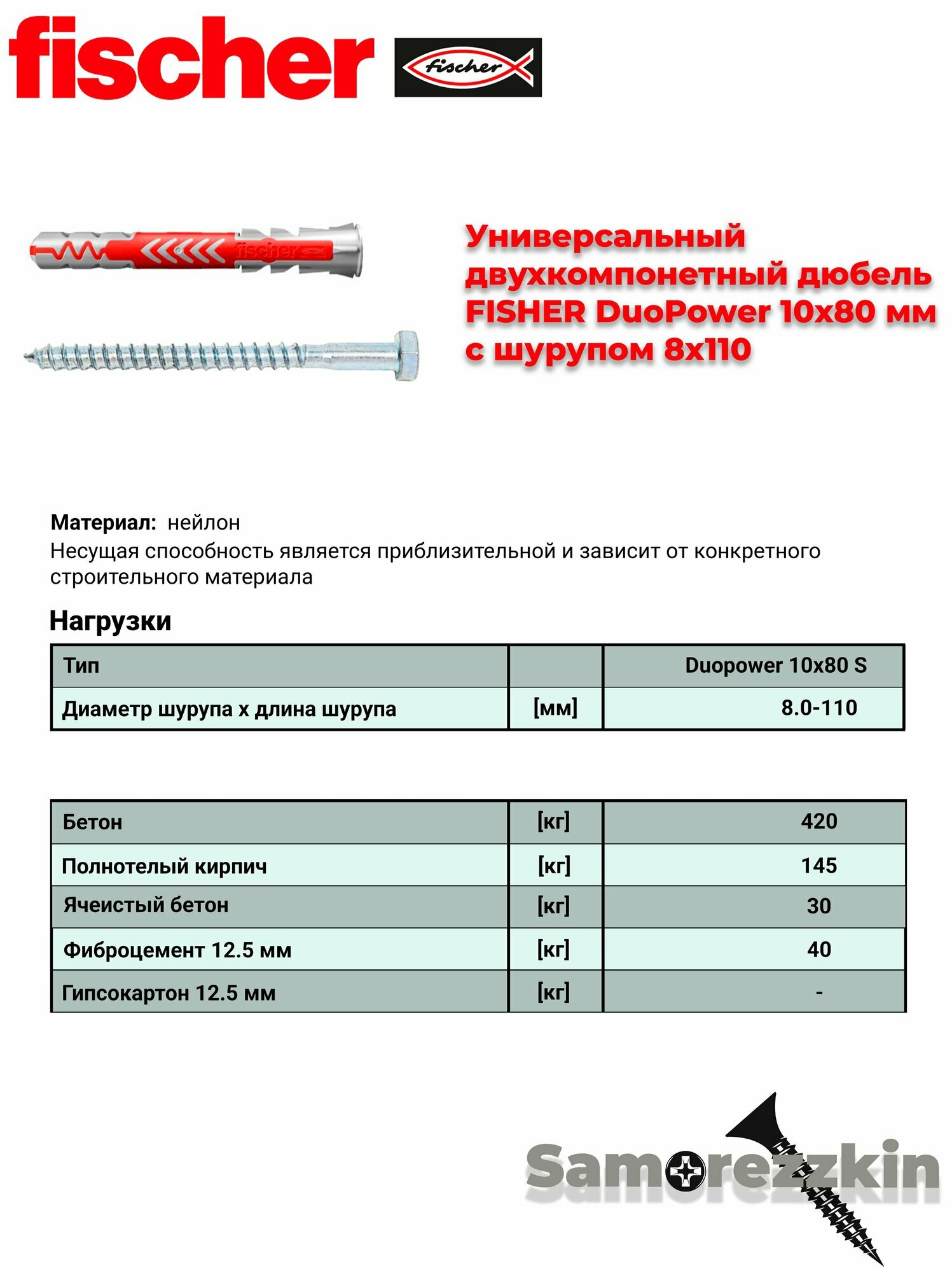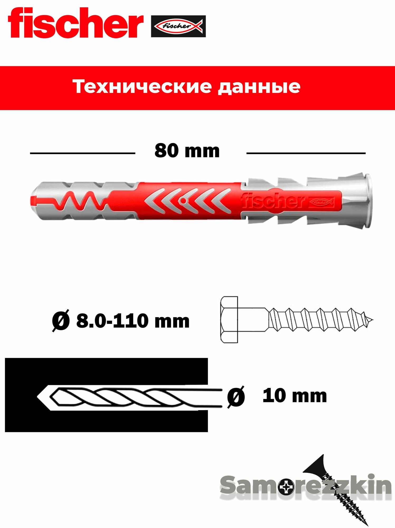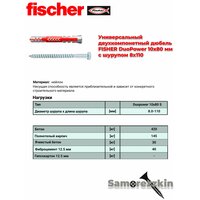Дюбель универсальный FISCHER DuoPower 10×80 мм с шурупом 8х110 мм: сравнение цен, характеристики, фото, актуальное наличие и цены.