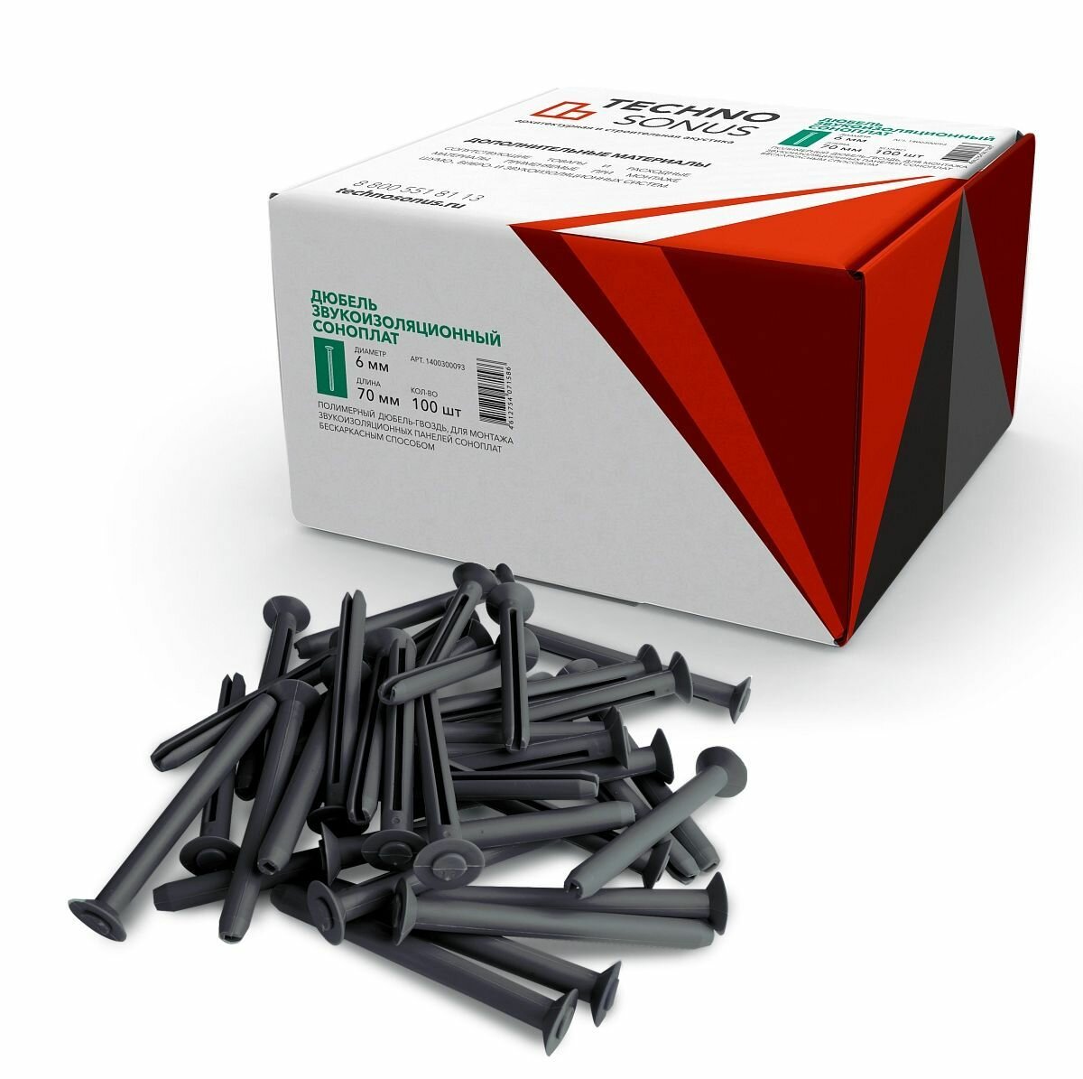 Купить Дюбель звукоизоляционный Соноплат (6мм х70мм) 100шт. — 2 упаковки с доставкой по всей России.