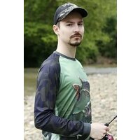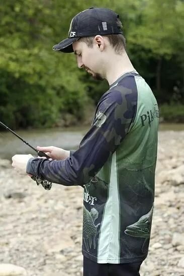 Джерси Crazy Fish Pike Hunter подойдет для ношения в теплое время года. Одежда разработана специально для спиннингистов, поэтому обладает всеми свойствами, необходимыми для комфорта человека, который активно двигается. Удобный крой позволяет свободно действовать руками: забрасывать приманки и освобождать их из зацепов, принимать рыбу в подсачек. Рукав реглан не стесняет движений, поэтому идеально подходит для спортивной и рыболовной одежды. Модель выполнена из дышащего полиэстера, благодаря чему пот не скапливается под джерси даже в сильную жару. Так как ткань быстро сохнет, в футболке не страшно попасть под летний дождь. В ней не нужно тратить драгоценные секунды на то, чтобы подтянуть рукава, если придется срочно доставать что-то из воды. Воротник-стойка не даст шее обгореть на солнце. Он не давит, так как степень прилегания регулируется молнией. Если станет тесно и жарко, ее можно будет расстегнуть. Под манжеты на рукавах не проникнут вездесущие насекомые. Так как рукав длинный, обработка одежды репеллентами становится максимально эффективной. Футболка обладает высокой прочностью на разрыв и устойчивостью к образованию затяжек, благодаря чему спиннингист может пробираться через кустарник и высокую траву без негативных последствий для одежды. Регулярное пребывание под палящим солнцем не наносит урона ткани. Краски сохраняют свою исходную яркость очень долго. Эластичный материал обеспечивает идеальную посадку, при этом он не деформируется после стирки и не требует глажения. Реглан декорирован тематическим принтом и надписью с названием бренда, нанесенной стильным шрифтом.