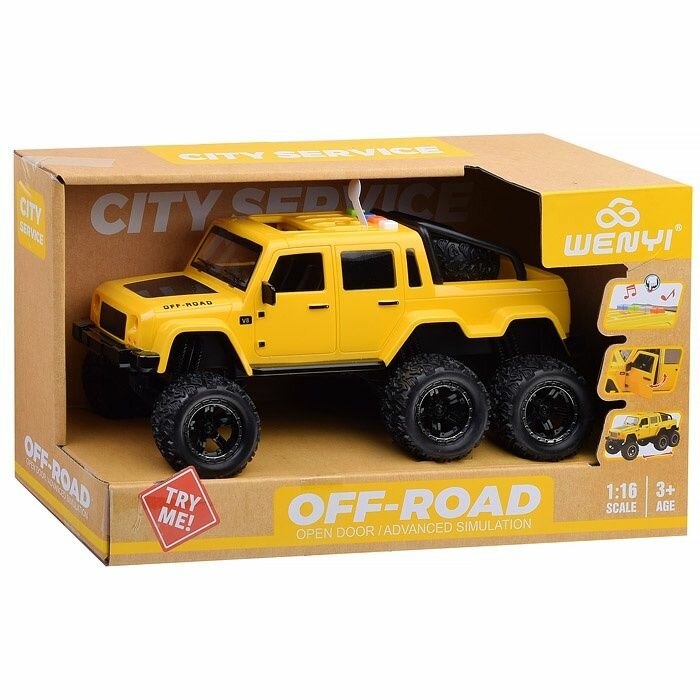 Купить Джип инерционный Wenyi Свет, звук, на батарейках, желтый, в коробке (WY480B) с доставкой по всей России.