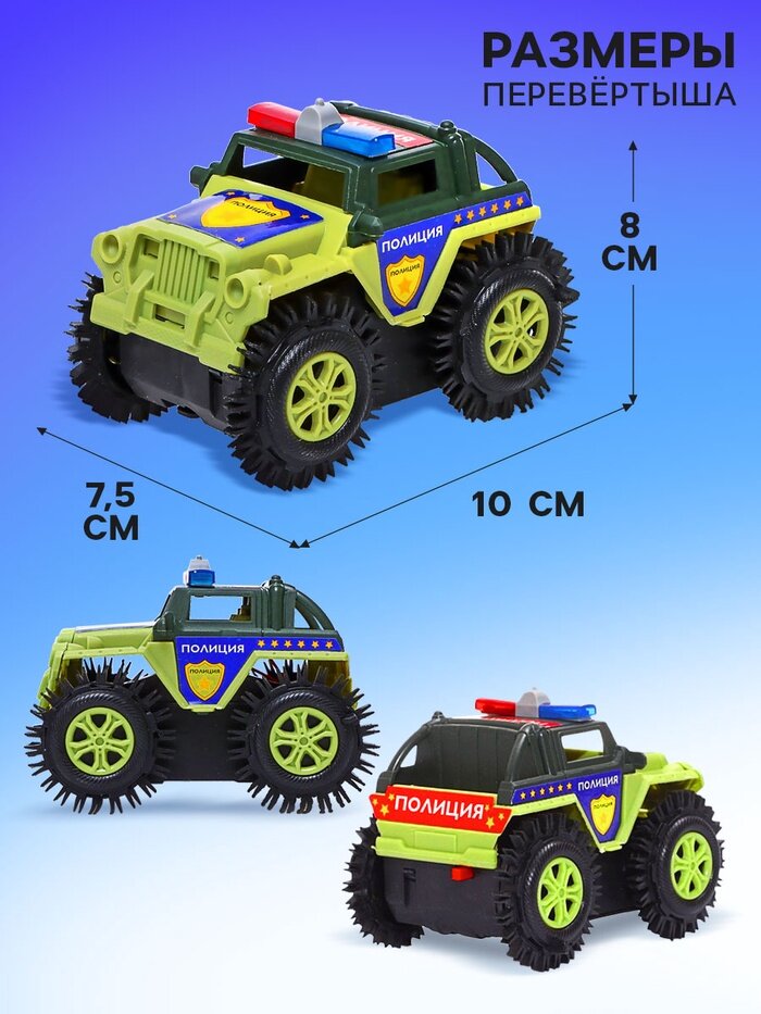 Купить Джип-перевёртыш «Полиция», работает от батареек, цвет зелёный с доставкой по всей России. Джип-перевёртыш «Полиция», работает от батареек, цвет зелёный: сравнение цен, характеристики, фото, актуальное наличие и цены.