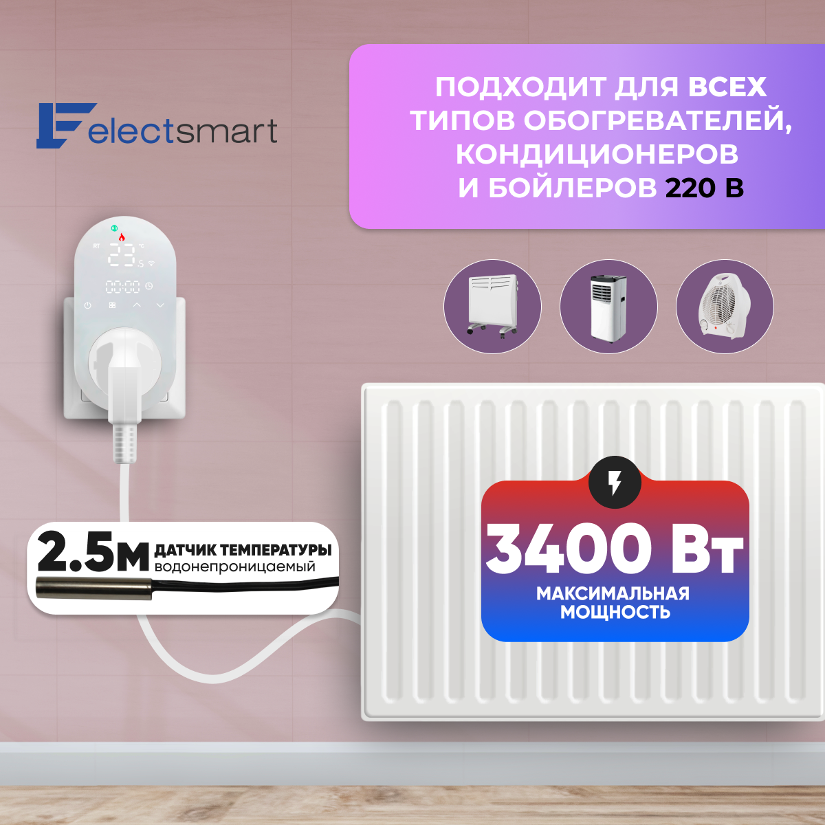 E-11-WiFi-YM Терморегулятор/термостат в розетку для обогревателя. Белый программируемый, сенсорный, с датчиком температуры. Голосовое управление Яндекс Алиса, Smart Life. ELECTSMART: сравнение цен, характеристики, фото, актуальное наличие и цены.