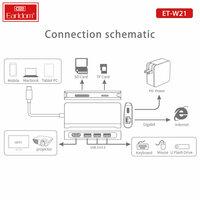 Устройство оснащено множеством портов, включая HDMI, TF, SD, RJ45 и 3 порта USB 3.0. Это позволяет одновременно подключать различные устройства, такие как смартфоны, планшеты, компьютеры и другие.