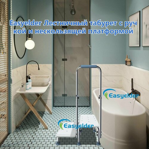 Многофункциональные ступеньки для кровати Easyelder и приставной стул: двухступенчатая конструкция, облегчающая людям, у которых недавно были проблемы с коленями/тазобедренными суставами, или выздоравливающим в больнице, доступ к более высоким кроватям, транспортным средствам, ваннам, а также внутри и снаружи палаты. Табурет Easyelder оснащен увеличенной платформой, которая обеспечивает пользователям достаточно места для удобной постановки ног. Табурет-стремянка Easyelder с 2 ступеньками оснащен длинной опорной ручкой, которая помогает людям сохранять равновесие стоя.