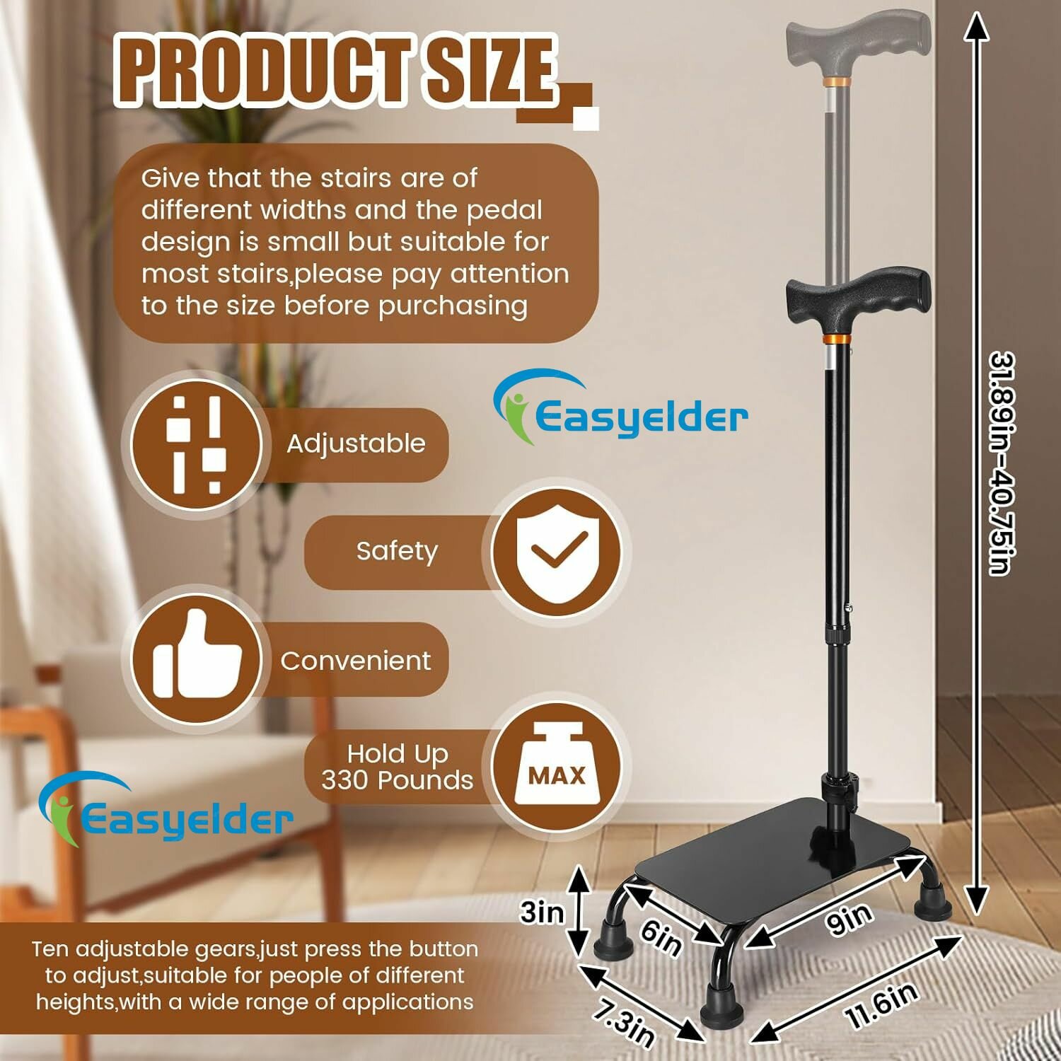 [Регулируемая высота]: Этот подъемник с полуступенчатой лестницей имеет 10 различных настроек высоты, варьирующихся от 31,89 дюйма до 40,75 дюйма (от пола до ручки трости); каждая регулируемая высота может быть изменена примерно на 0,66 дюйма, что обеспечивает индивидуальную настройку для людей разного роста; приспособления для подъема по лестнице были научно разработаны для убедитесь, что они подходят для большинства пользователей