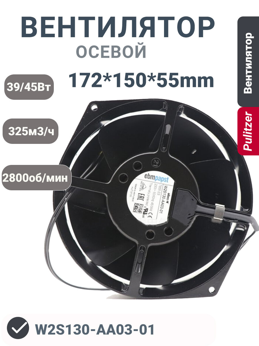 Ebmpapst W2S130-AA03-01 230 В 45/39 Вт 172 * 150 * 55 мм высокотемпературный шкафный осевой вентилятор охлаждения: сравнение цен, характеристики, фото, актуальное наличие и цены.