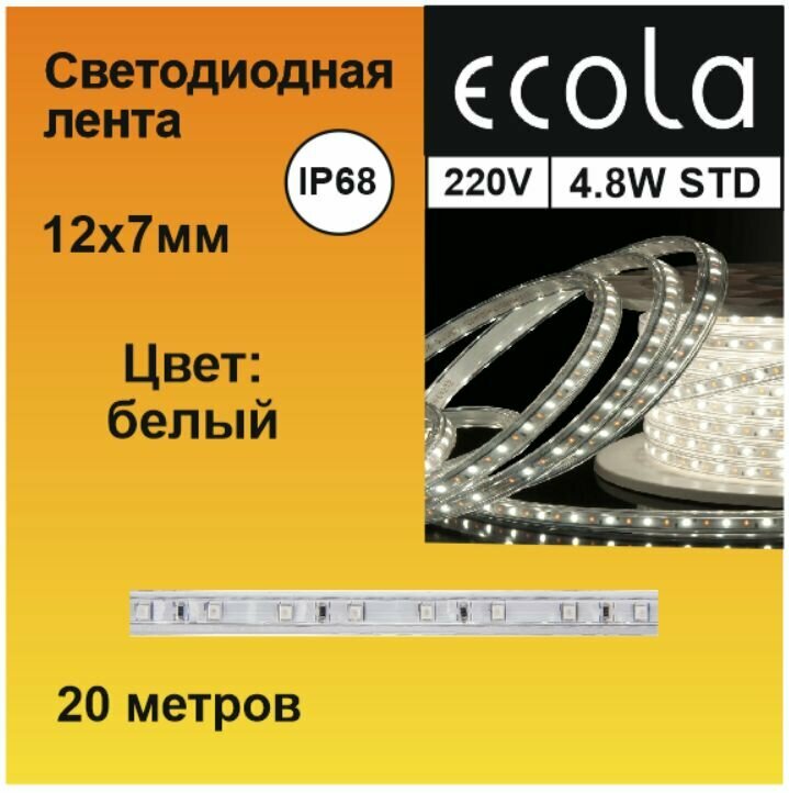 Ecola LED strip 220V STD 4,8W/m IP68 12×7 60Led/m 6000K 4Lm/LED 240Lm/m лента 20м.: сравнение цен, характеристики, фото, актуальное наличие и цены.