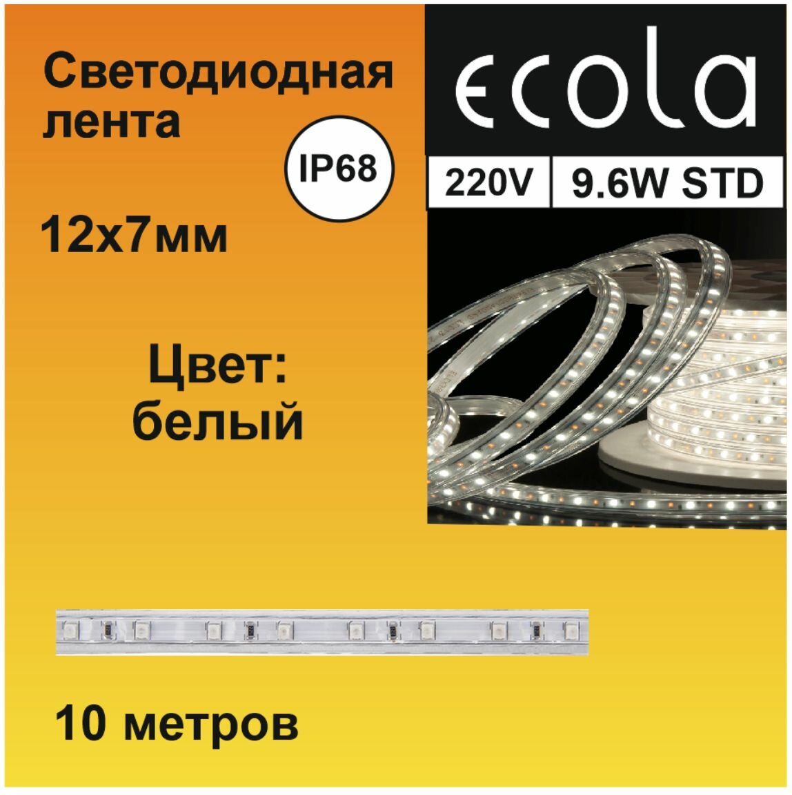Ecola LED strip 220V STD 9,6W/m IP68 12×7 120Led/m 6000K 4Lm/LED 480Lm/m лента 10м.: сравнение цен, характеристики, фото, актуальное наличие и цены.