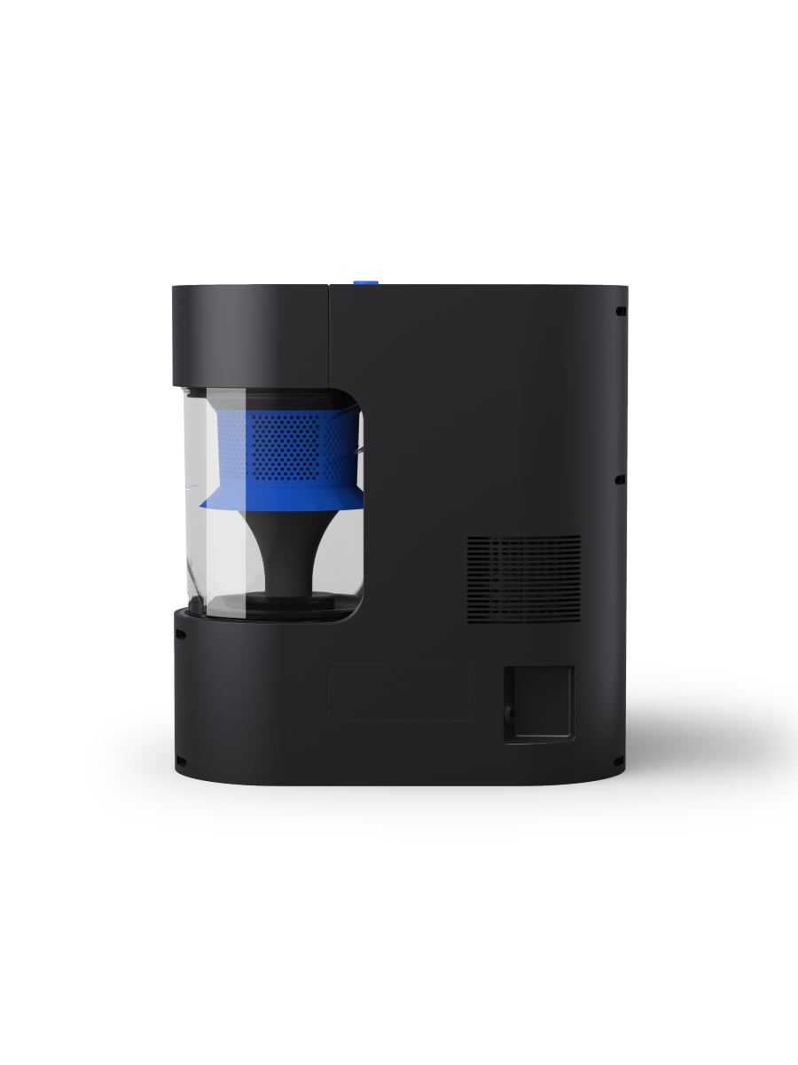 Док-станция с циклонной системой автоматически опустошает контейнер для пыли, собирая мусор в прозрачный пластиковый бак объемом 1.5 л, что устраняет необходимость в сменных мешках и облегчает обслуживание.