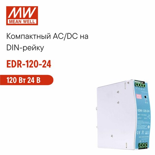 Блок питания EDR-120-24 от MEAN WELL - это модульный источник питания на DIN-рейку, который обеспечивает стабильное и надежное питание для вашего оборудования.