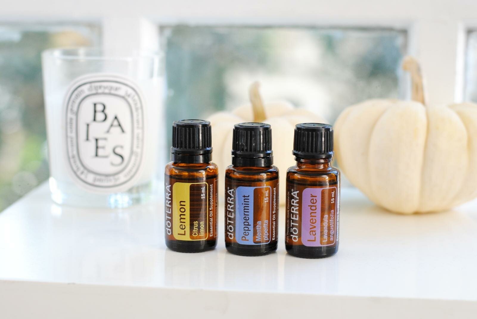 лавандовое масло, масло перечной мяты и лимонное масло.