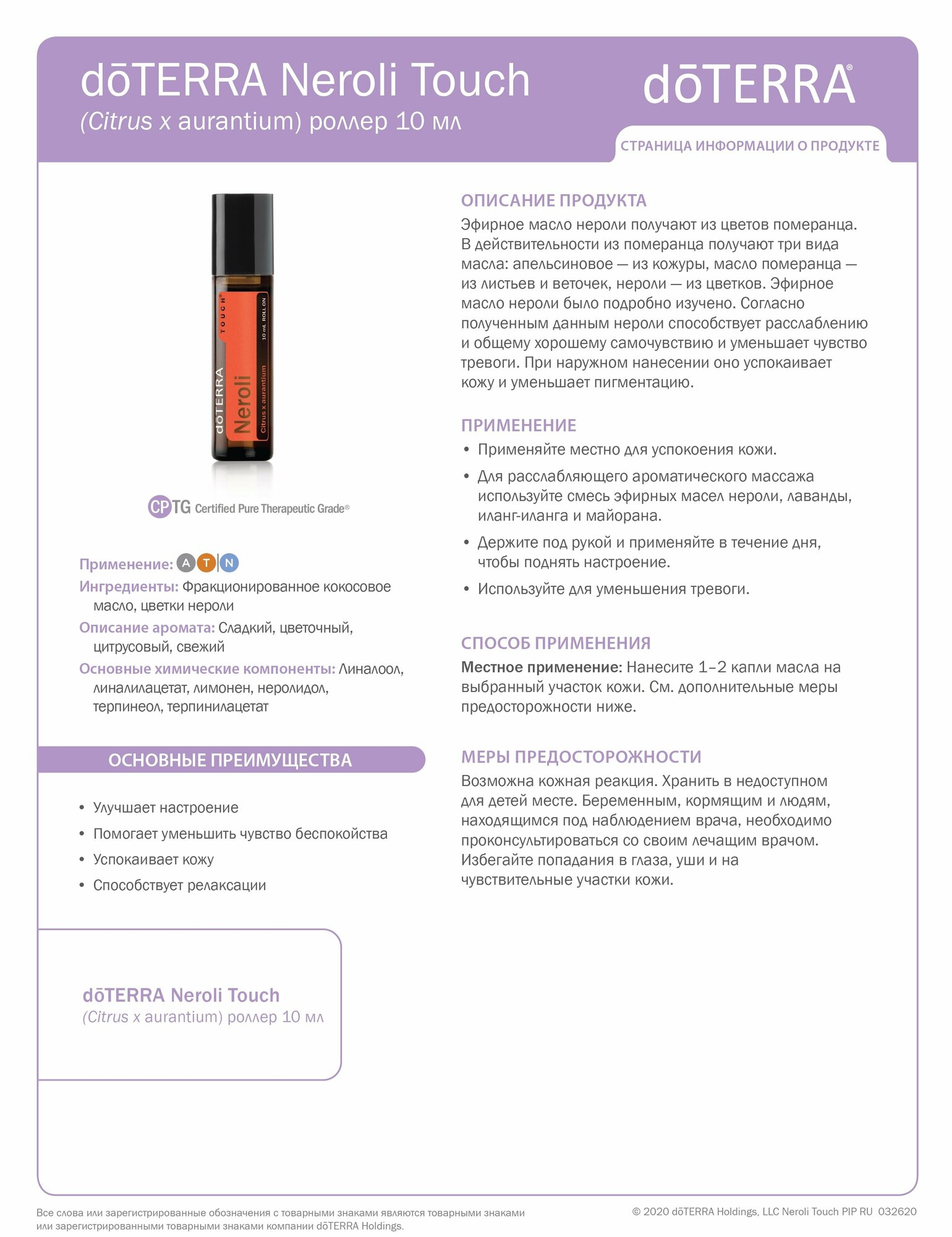 Применение: Применяйте местно для успокоения кожи. Для расслабляющего ароматического массажа используйте смесь эфирных масел нероли, лаванды, иланг-иланга и майорана. Держите под рукой и применяйте в течение дня, чтобы поднять настроение. Используйте для уменьшения тревоги.