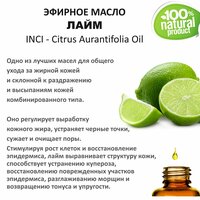 Главными косметическими свойствами лаймового масла по праву считают тонизирующее и очищающее. Это одно из лучших масел для общего ухода за жирной кожей и склонной к раздражению и высыпаниям кожей комбинированного типа. Оно регулирует выработку кожного жира, устраняет черные точки, сужает и очищает поры. Стимулируя рост клеток и восстановление эпидермиса, лайм выравнивает структуру кожи, способствует устранению купероза, восстановлению поврежденных участков эпидермиса, разглаживанию морщин и возвращению тонуса и упругости.
