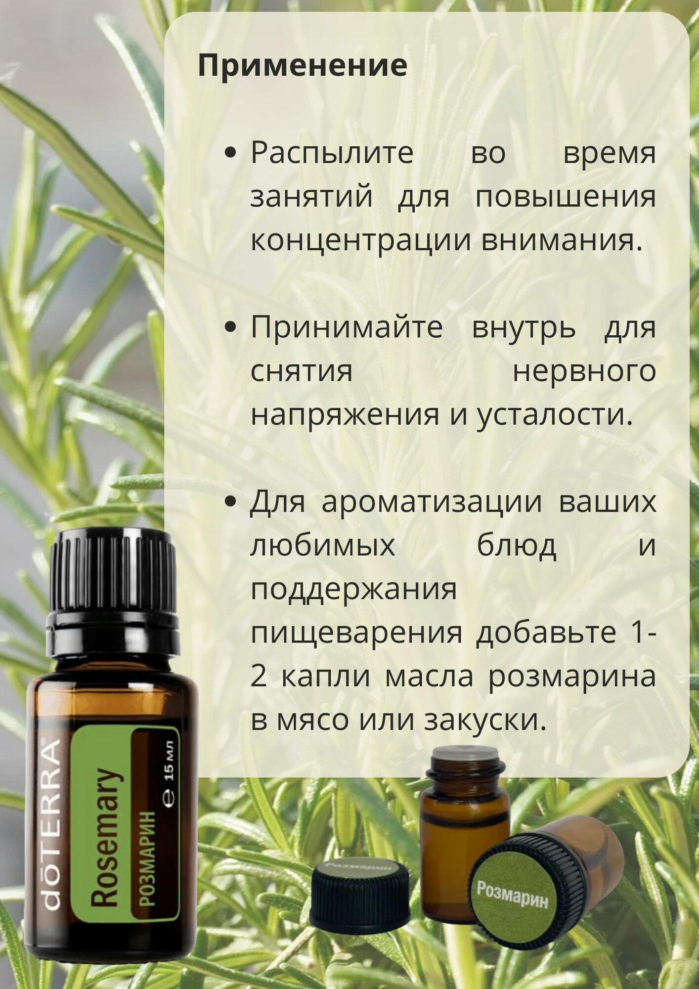 Эфирное масло doTERRA Розмарин, для бани и сауны, дистилляция, 100%, 15мл: сравнение цен, характеристики, фото, актуальное наличие и цены.