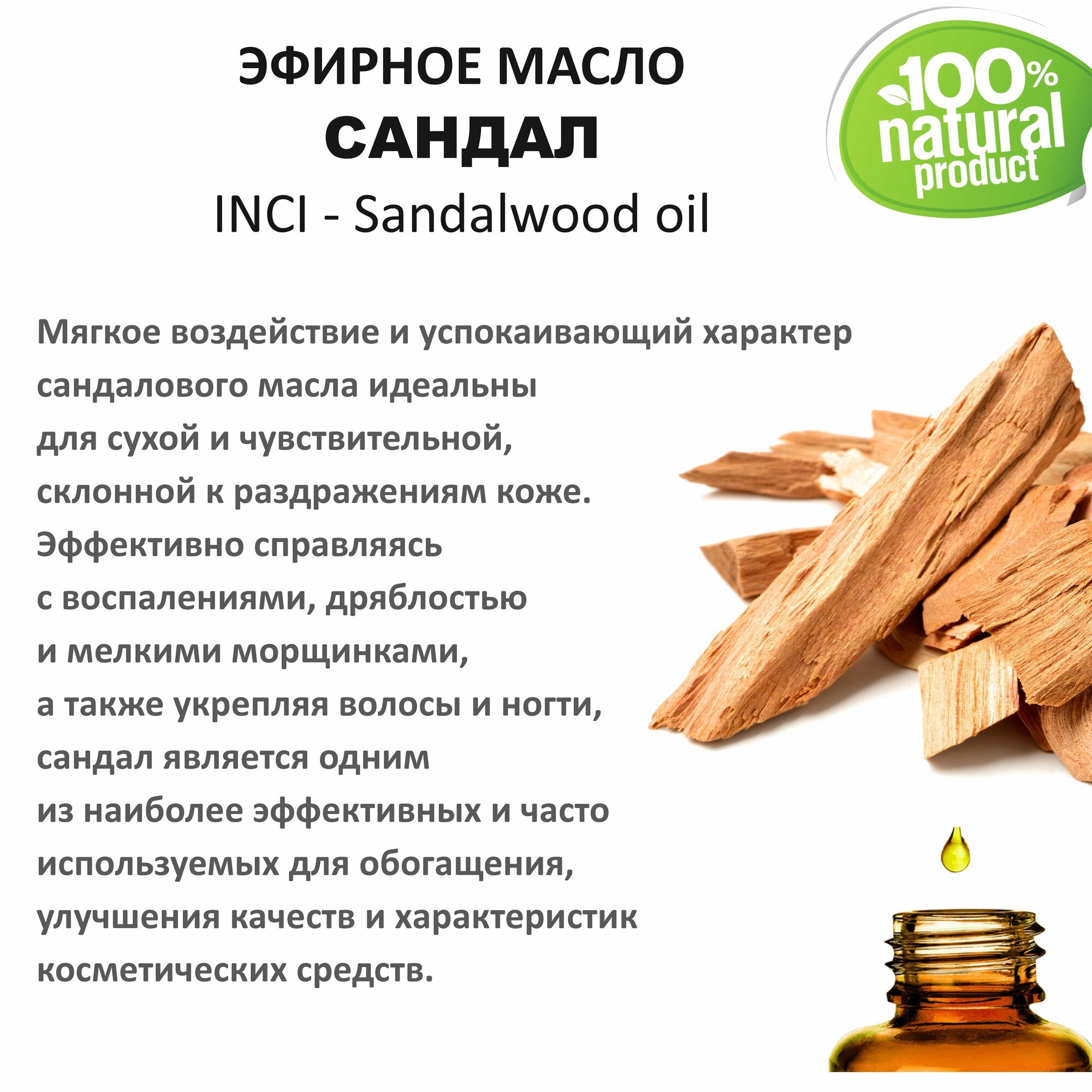 Сандаловое масло характеризуется ярко выраженным омолаживающим эффектом в борьбе с морщинами и расплывчатостью контуров лица и всего тела.